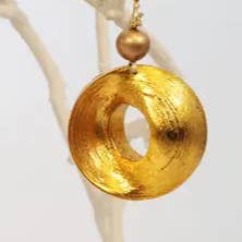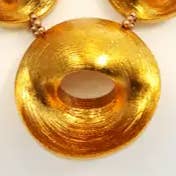 Fai un ingresso indimenticabile con questa collana artigianale realizzata con ritagli di legno riciclato provenienti da mobili locali. Ogni grande perla rotonda, dal diametro di 5 cm, è accuratamente dorata a mano da abili artigiani, trasformando materiali di recupero in un gioiello unico e di grande impatto. Il design con lunghezza regolabile permette di indossarla più corta, aderente al collo per un effetto drammatico, o più lunga per un tocco elegante. Nonostante le dimensioni, è leggera e costituisce una scelta ecologica perfetta per feste, matrimoni, compleanni o altre occasioni speciali. Questa collana con perle di legno giganti è più di un semplice accessorio: è una dichiarazione di moda sostenibile per chi ama design unici, artistici ed eco-consapevoli. Lunghezza: Regolabile da 44 cm (17 pollici) fino a 90 cm (36 pollici). Colori disponibili e codici prodotto: - Dorato a mano - NL2402-03 - Argento a mano - NL2402-02