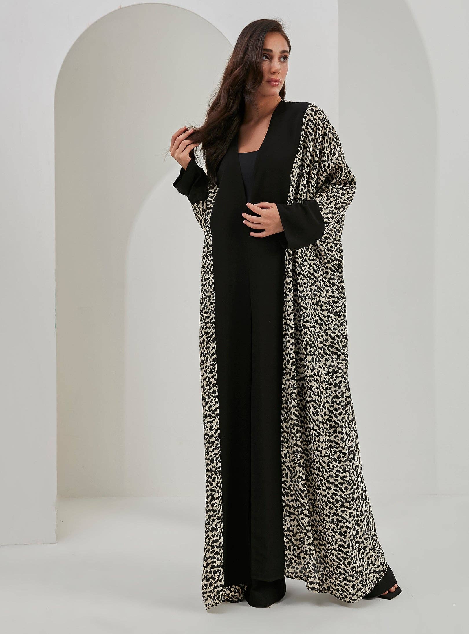 Abito Kaftano a Doppio Strato in Organza Nera all'ingrosso