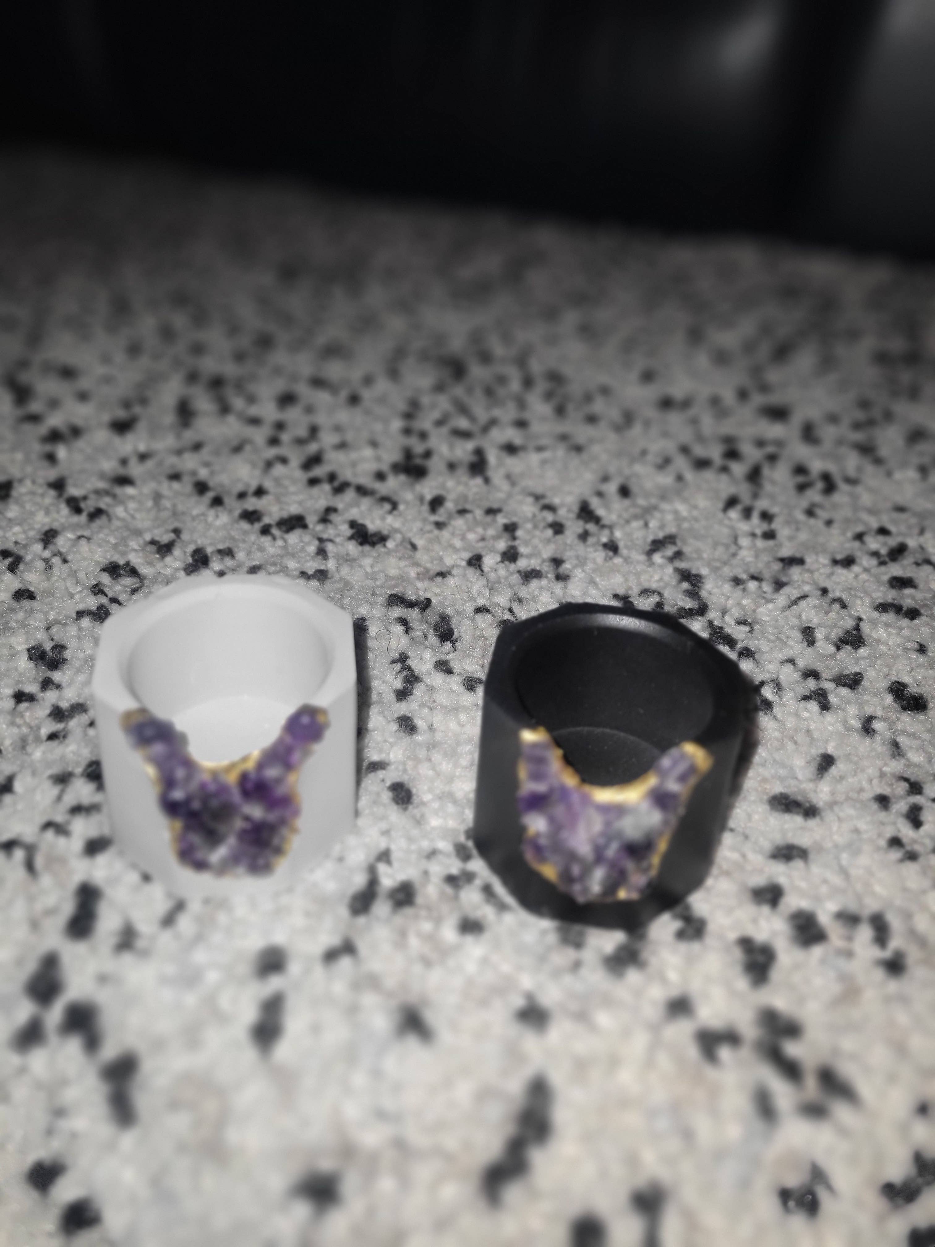 Portacandele in ametista grezza | Candela di cristallo nera e nera