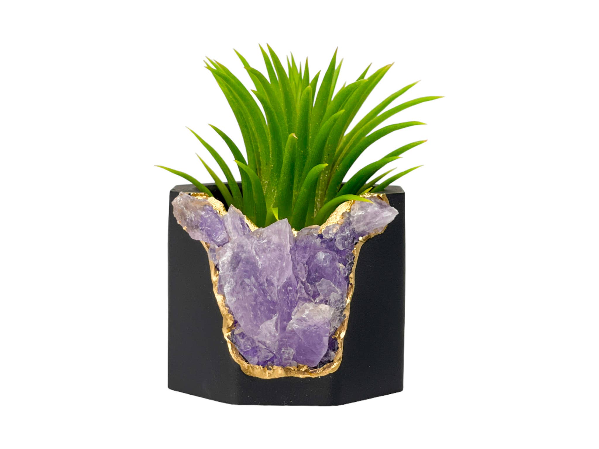 Cristalli naturali e cemento si formano insieme per creare un regalo di inaugurazione della casa unico e unico nel suo genere, un accento domestico e una casa per le tue piccole piante. I nostri splendidi portacandele in cristalli possono essere utilizzati in una varietà di modi: portacandele, portacandele, vaso per piante grasse, portagioie a graziose tazze per piccoli oggetti. Proprietà curative: l'ametista è una pietra di trasformazione, guarigione e pulizia; si ritiene che abbia proprietà di stabilità, calma e intuizione, aumenta la chiarezza della mente e facilita il processo decisionale; è anche un antistress naturale; l'ametista è una delle pietre ideali per la meditazione e la sua energia aiuta ad attivare la mente e facilita l'autoriflessione taglia 2,2 «(L) x 1,8" (A) caratteristiche • ametista schiacciata a mano cruda • colore cemento - nero • foro di drenaggio artigianale poiché realizzato con l'ombreggiatura umana del calcestruzzo e le dimensioni dei cristalli possono variare leggermente. Riceverai una fioriera unica e non sarà esattamente uguale a quella delle foto.