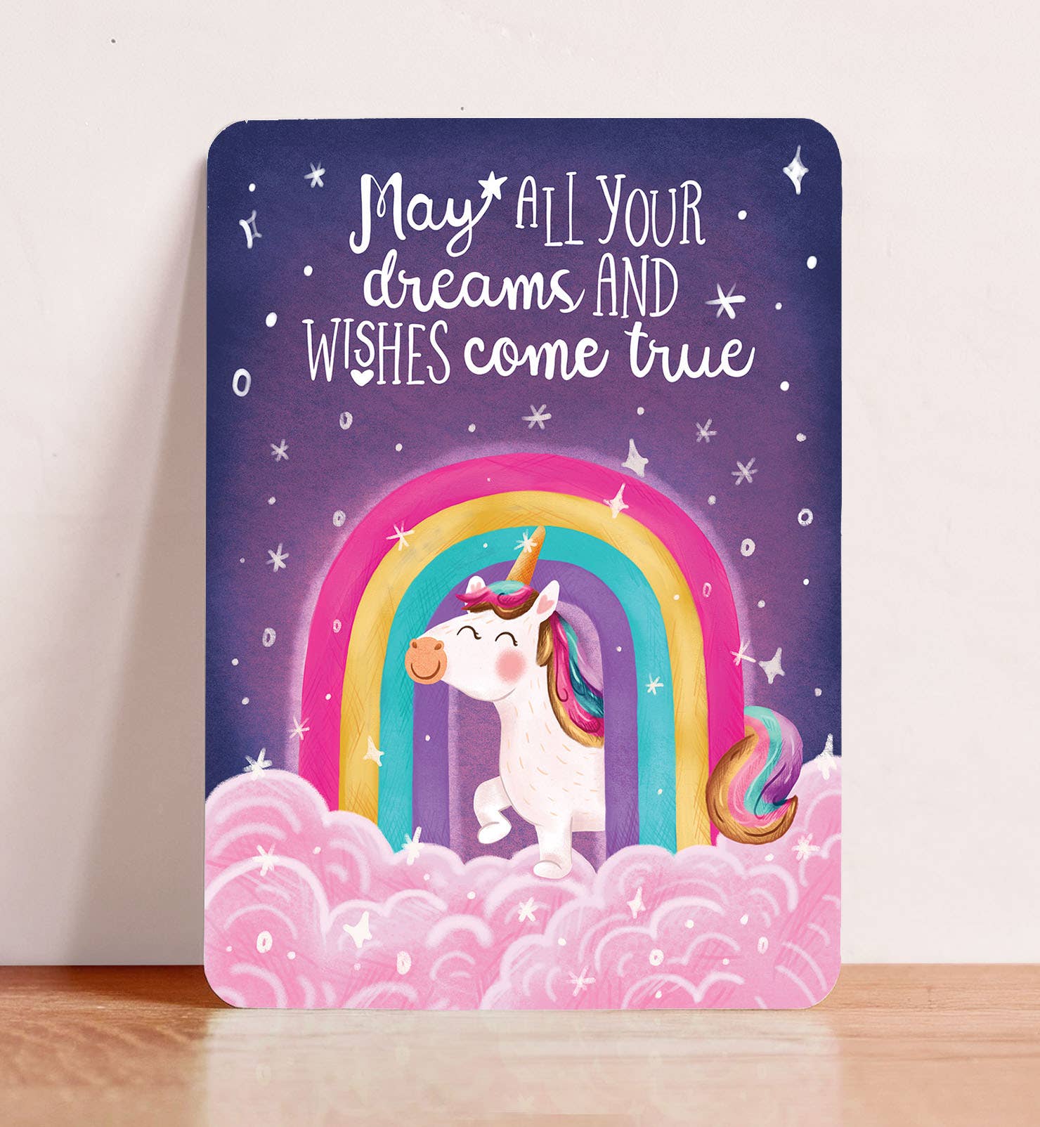 Biglietto di compleanno colorato con unicorno e arcobaleno per bambini all'ingrosso