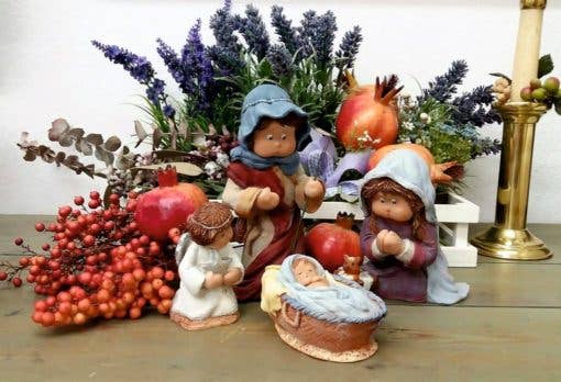 Nessun altro ha queste meravigliose miniature di natività fatte con noci e prodotti naturali. Semplicemente adorabili e costose. Le vendiamo sempre, anche tutto l'anno.