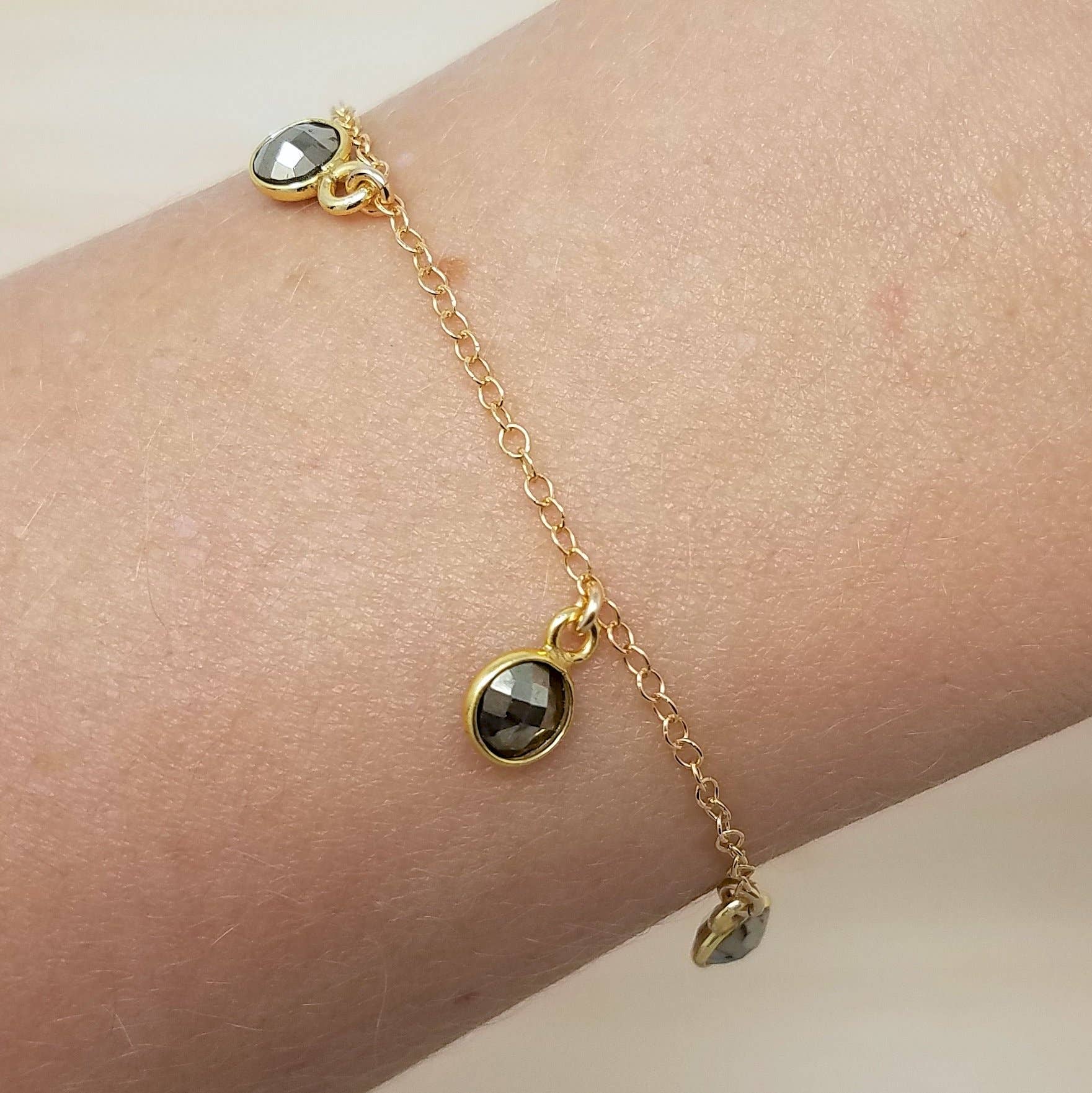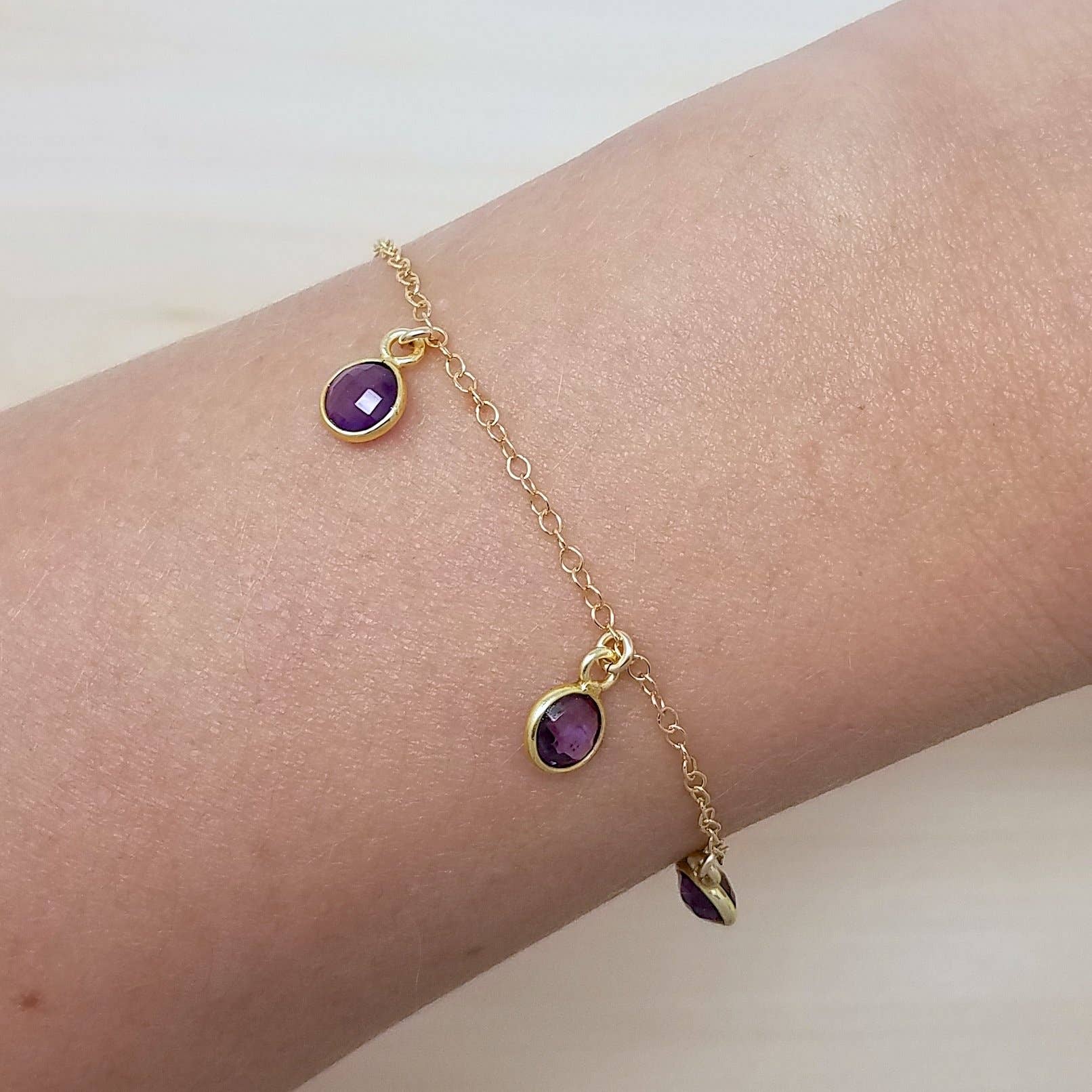 Un bracciale con charm granato con sei gemme rosso intenso racchiuse in castoni vermeil su una catena ipoallergenica riempita in oro. Scelta di ricevere il braccialetto su una scheda di visualizzazione o in un sacchetto di gioielli. Scatola espositiva fornita con l'acquisto di 10 o più biglietti di gioielleria. 14k oro riempito catena e risultati. 6mm granato con lunetta vermeil. 6" con 1,5 «catena di estensione.