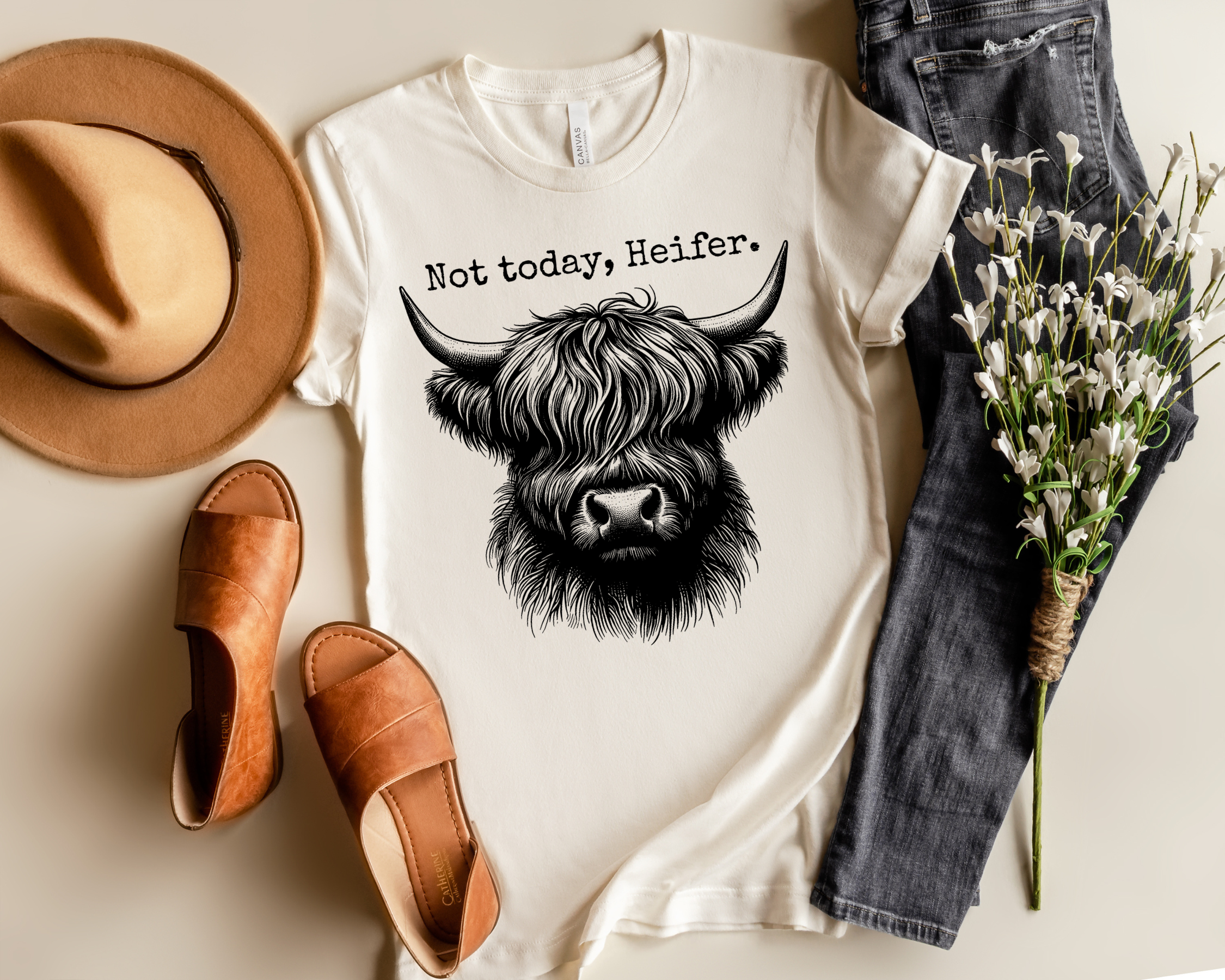 NON OGGI, GIOVENCA. GRAPHIC TEE è sublimato su una maglietta unisex Bella + Canvas color sabbia, bianco, giallo crema burro, grigio melange o pesca. Queste immagini sono simulazioni e la colorazione può variare. dopo il primo lavaggio può verificarsi un leggero sbiadimento. 50% poliestere 25% cotone 25% rayon Pre-ristretto per una maggiore durata Fedele alla taglia, tuttavia, gli uomini potrebbero voler prendere una taglia più grande per avere più spazio nella zona delle spalle.