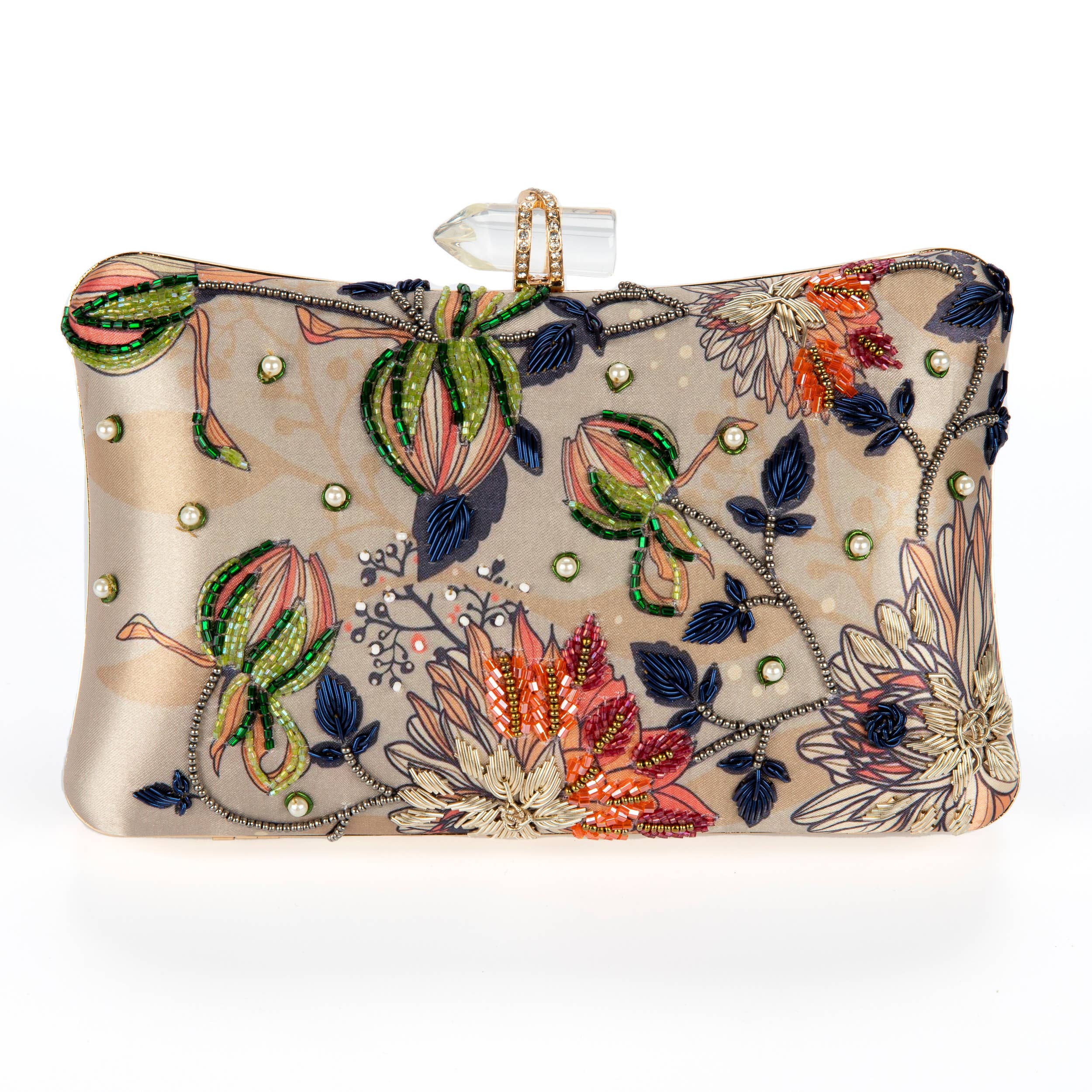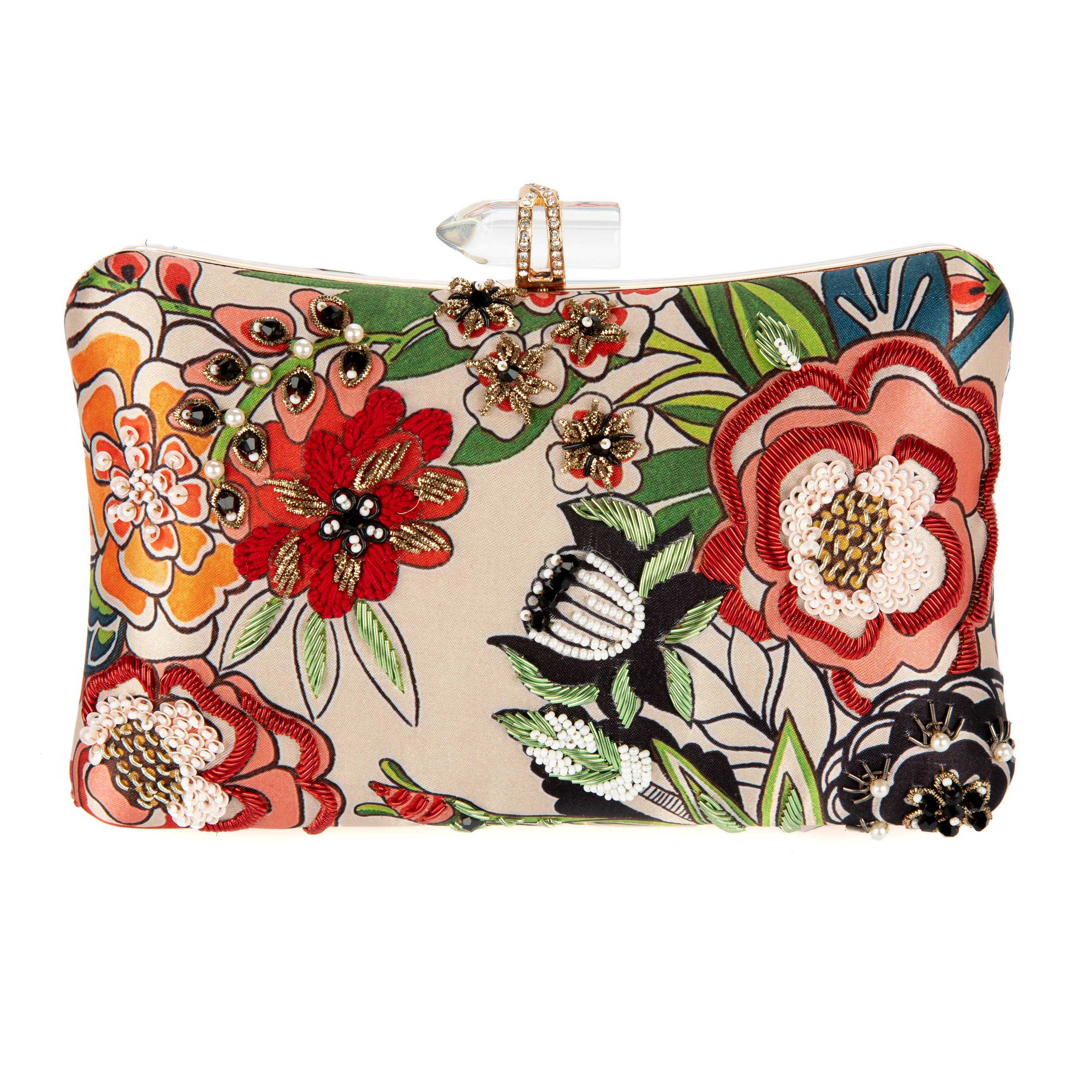 Ricamo a mano evidenziato su finta seta. Questa borsa è stupenda!