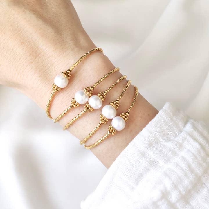 ✨ Una collana luminosa e delicata ✨ Con le sue perle fini e brillanti, la collana PRETTY aggiunge un tocco di splendore ai tuoi abiti, sia d'estate che d'inverno. Elegante e senza tempo, esalta divinamente il tuo portamento e si indossa sia da sola che in combinazione. Un must-have quotidiano come per le grandi occasioni, pensato per illuminare il tuo stile con discrezione ed eleganza. ✨ 🔎 DETTAGLI • Materiali: Perle Miyuki placcate in oro, perle d'acqua dolce naturali (ogni perla è unica), catenina di estensione e chiusura in acciaio inossidabile dorato • Dimensioni: Regolabile da 42 a 50 cm – perle montate su un filo cablato resistente • Peso: ca. 4 g – leggero e piacevole da indossare • Produzione artigianale in Francia 🇫🇷 💎 CONSIGLI PER LA CURA Per preservare la sua lucentezza, evitare l'acqua, i profumi e le creme. Rimuoverlo durante le attività fisiche e riporlo con cura in un sacchetto o in una scatola per gioielli quando non lo si indossa.