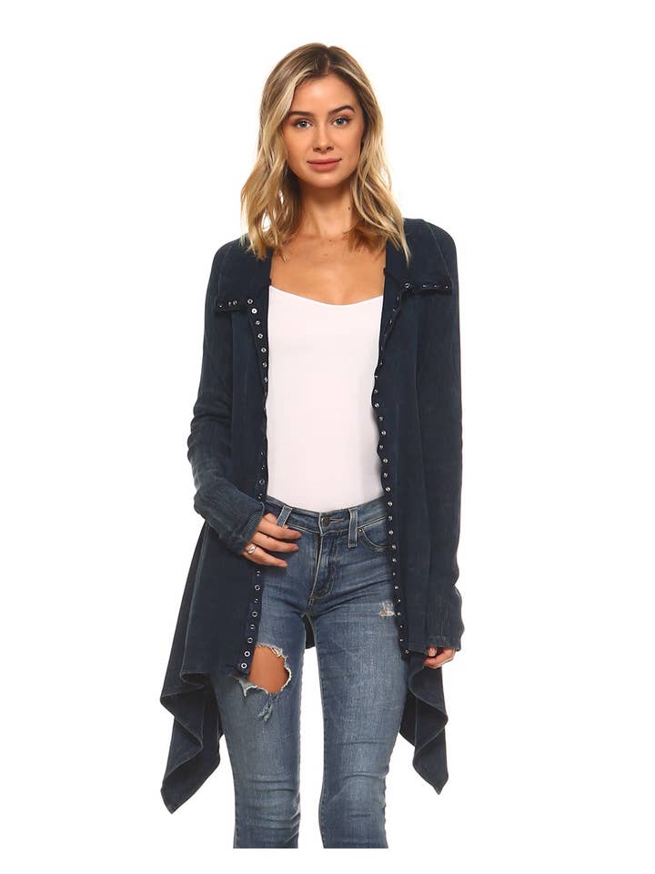 Urban X Soft Mineral Lavato Manica lunga Tunica termica Capospalla con Button Down Colletto Dettaglio collo collo, indossato anche come giacca Button Up collo tartaruga Occasione: per la stagione, la sera, la spiaggia, le vacanze, i festival, l'autunno e l'autunno. Contenuto: 95% cotone, 5% spandex. Istruzioni per la cura: lavare a mano con acqua fredda, non candeggiare, appendere o asciugare. Provenienza: Made in USA. La modella indossa un campione di taglia piccola 6 (1S-2M-2L-1XL).