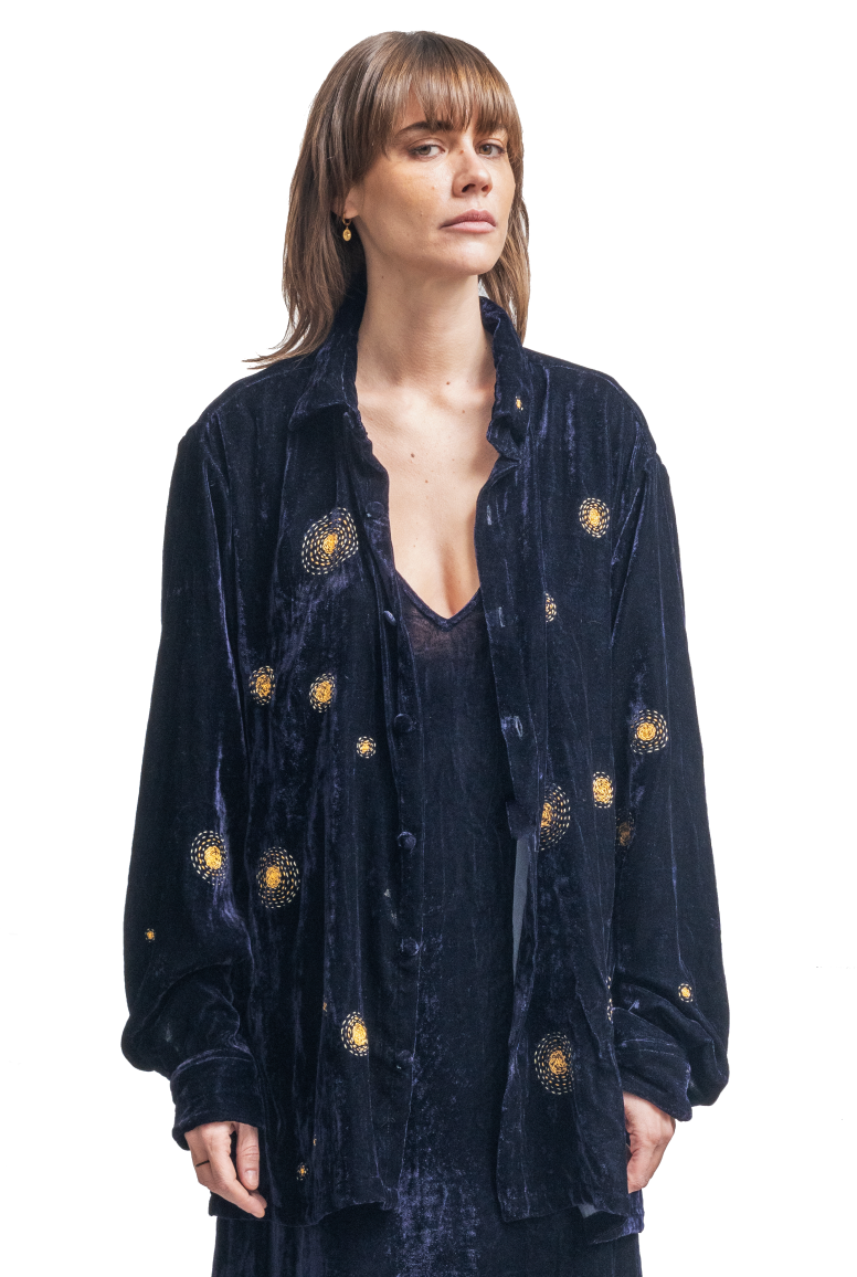 La nostra giacca Suzani è l'accessorio perfetto per migliorare il tuo stile! Sta benissimo sopra un abito lungo o indossata con jeans e stivali. Questa giacca è realizzata in tessuto di cotone TNT con ricamo suzani. *Il tessuto della fodera interna può essere diverso da quello mostrato nell'immagine (a seconda della disponibilità del tessuto). Questa giacca non è reversibile. Misure (circa): ********************************* *Lunghezza: 23 pollici / 58 CM *Busto: 40 pollici / 101 CM Maniche: 20 pollici / 50 CM