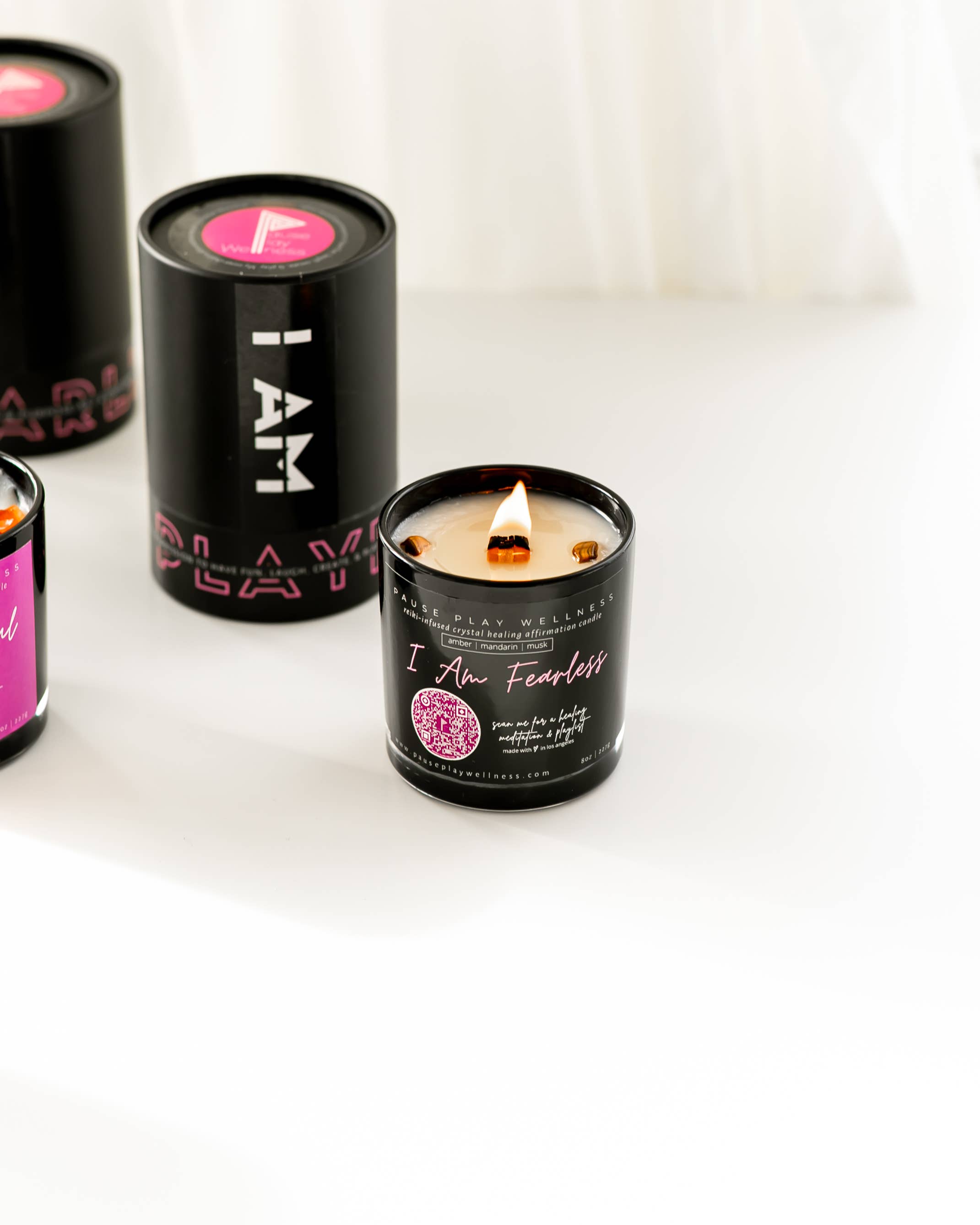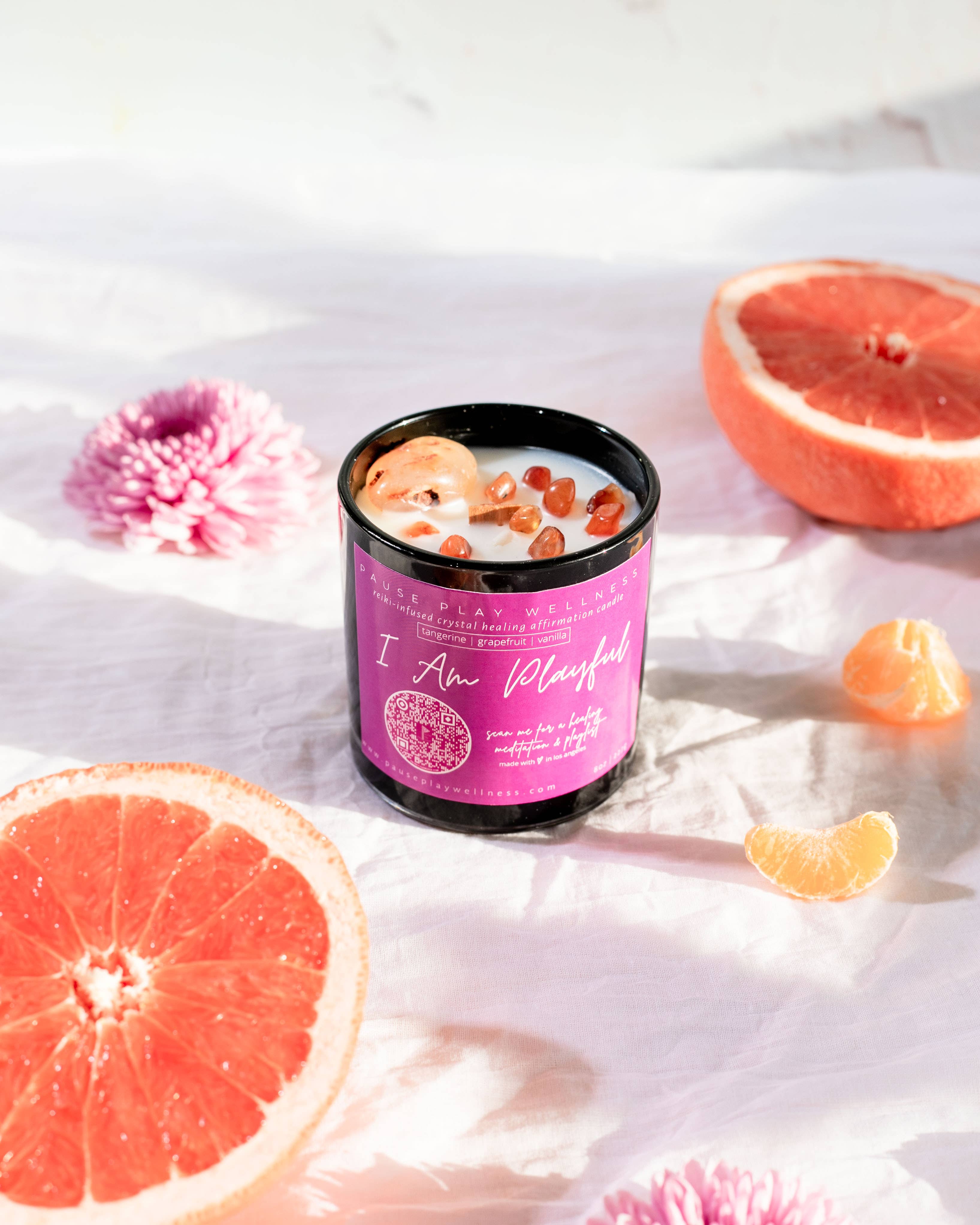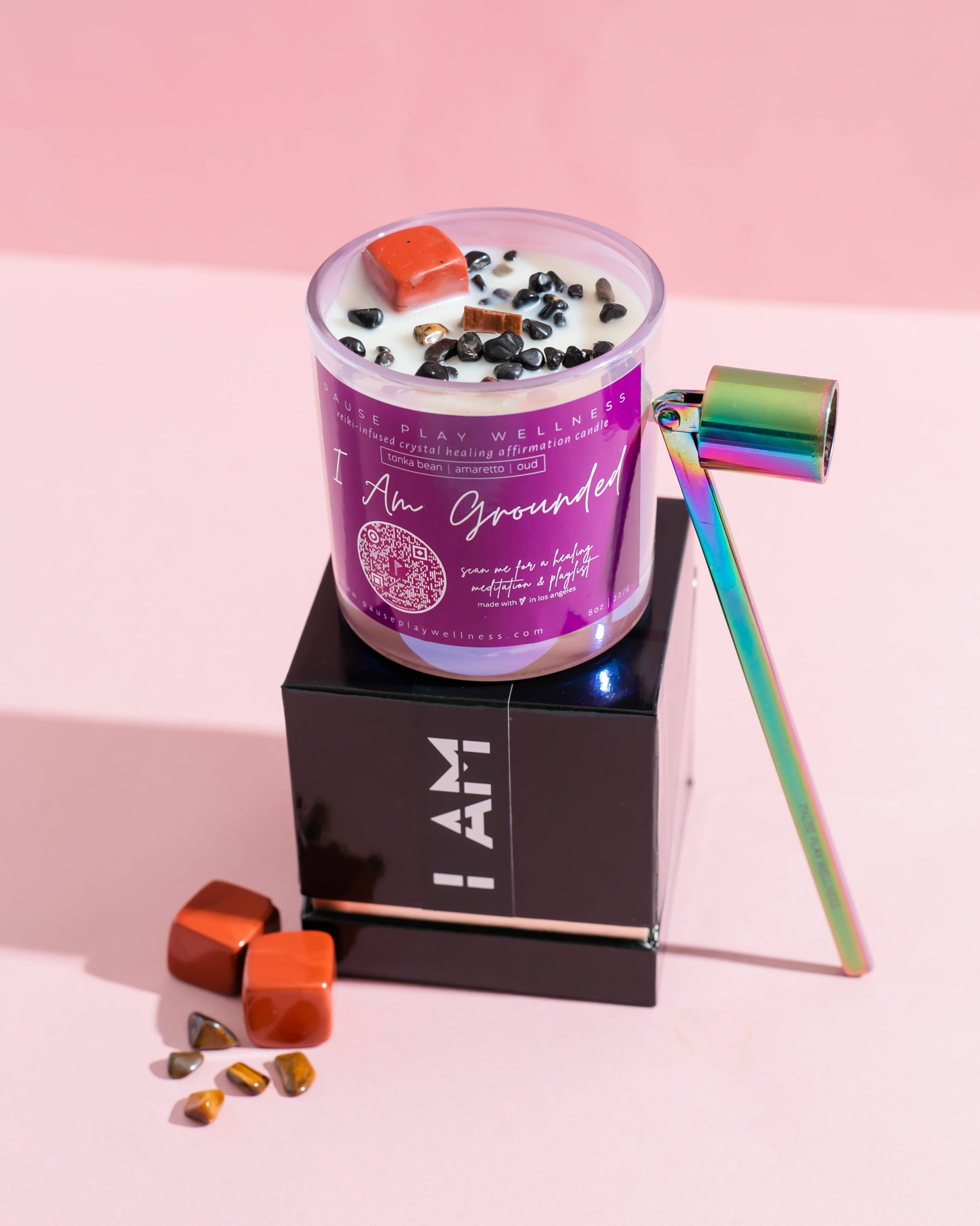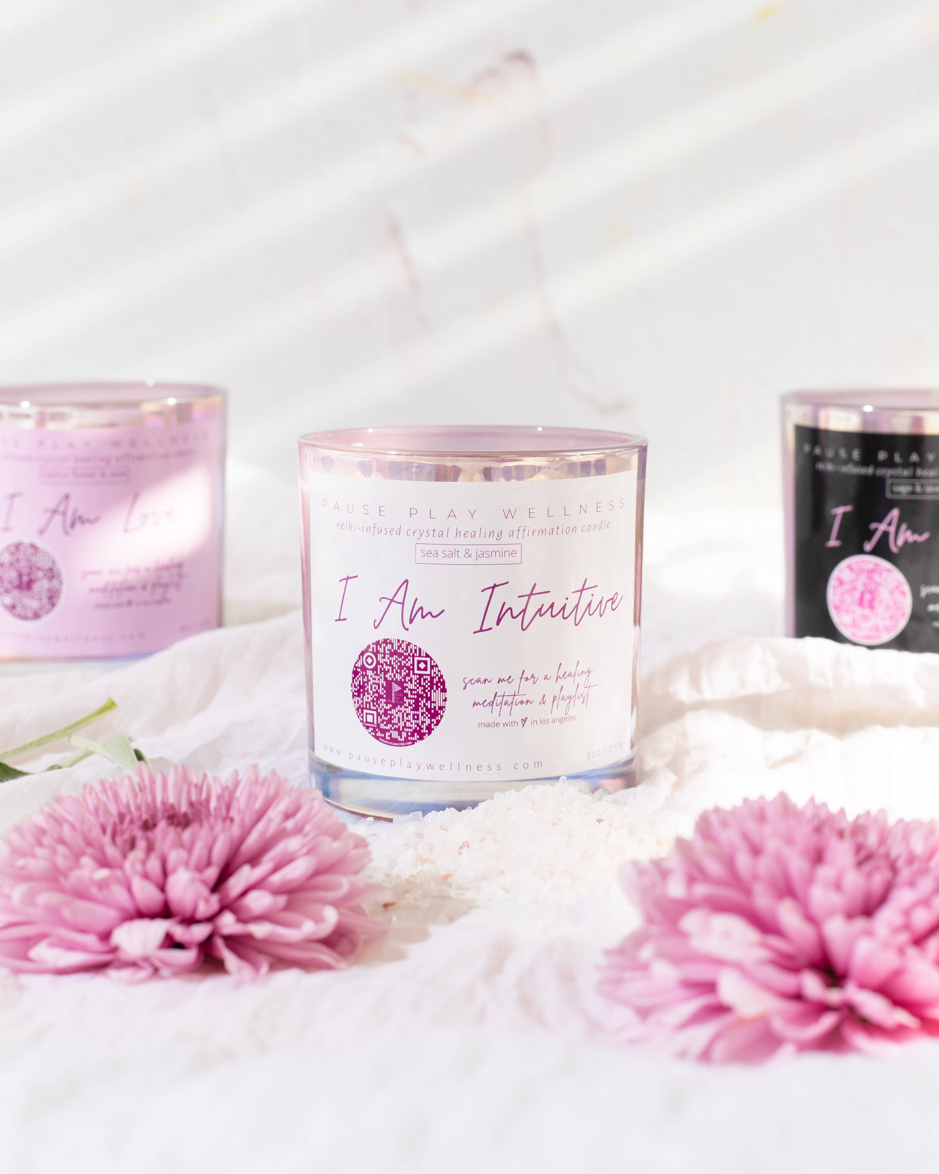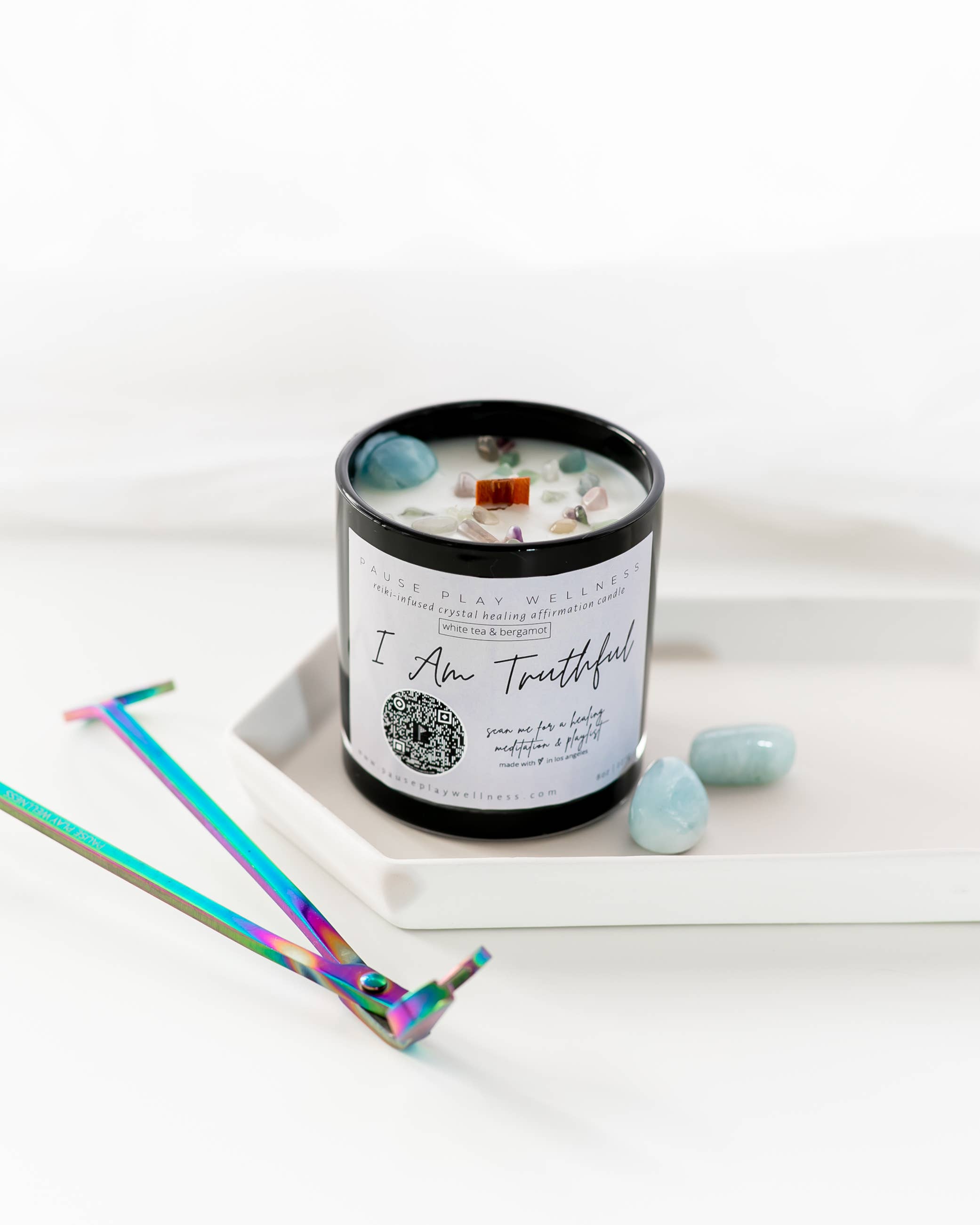 Candela «I Am Intuitive» con meditazione e playlist QR La candela, i cristalli, la meditazione e la playlist sono progettati per supportare il Chakra del Terzo Occhio e aiutare ad approfondire la connessione con il loro sapere interiore e la sacra bussola intuitiva. Le candele Pause Play Wellness sono 100% prive di glutine, tossine, parabeni e ftalati. Ogni candela è ornata con cristalli di provenienza etica, infusa con reiki, e viene fornito con una meditazione e playlist per amplificare le sue proprietà curative e il livello di impegno con la propria pratica di auto-cura. Ingredienti: 100% cera di cocco con olio di albicocca. Fragranza: sale marino e gelsomino. Cristalli: ametista e quarzo trasparente. Affermazione: Io sono intuitivo. La mia conoscenza interiore è una guida di cui posso fidarmi e mi conduce con chiarezza, ispirazione e scopo. Durata della combustione: fino a 50 ore. Peso: 1 kg. Dimensioni barattolo: 3 x 3,25.