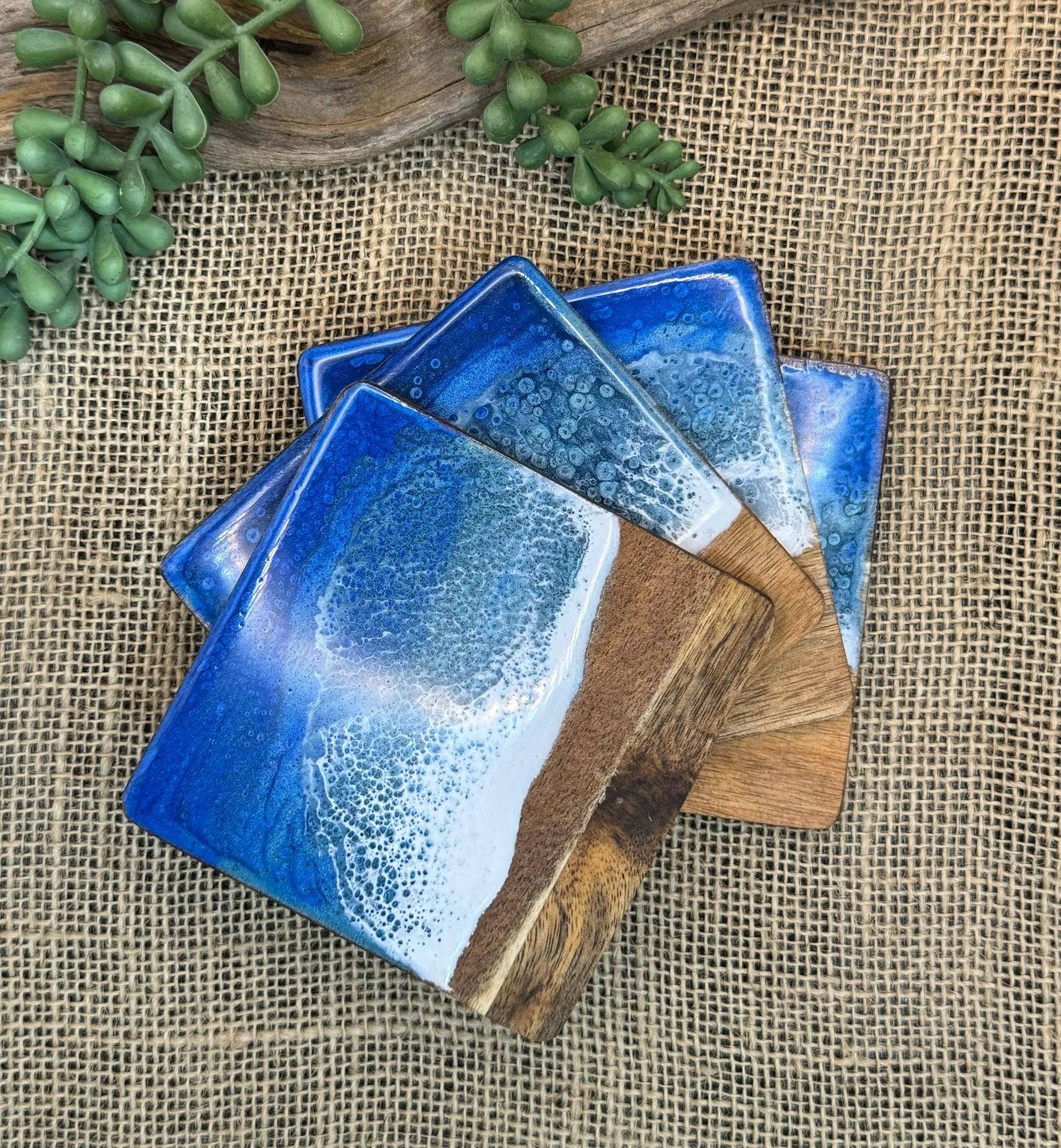 Apribottiglie in resina oceanica, magnetico, sottobicchiere, legno, fatto a mano, arte in resina, accessorio da bar all'ingrosso