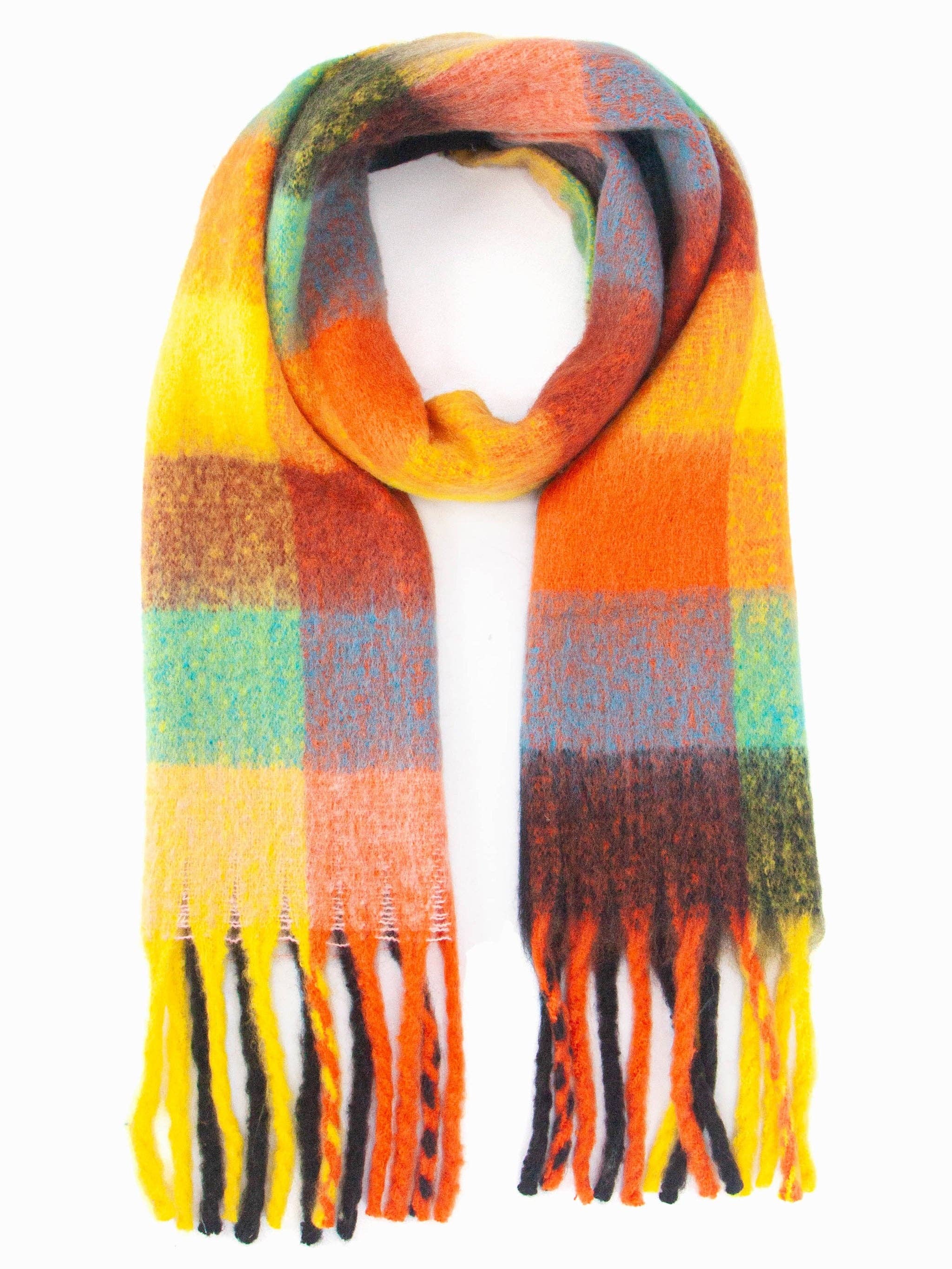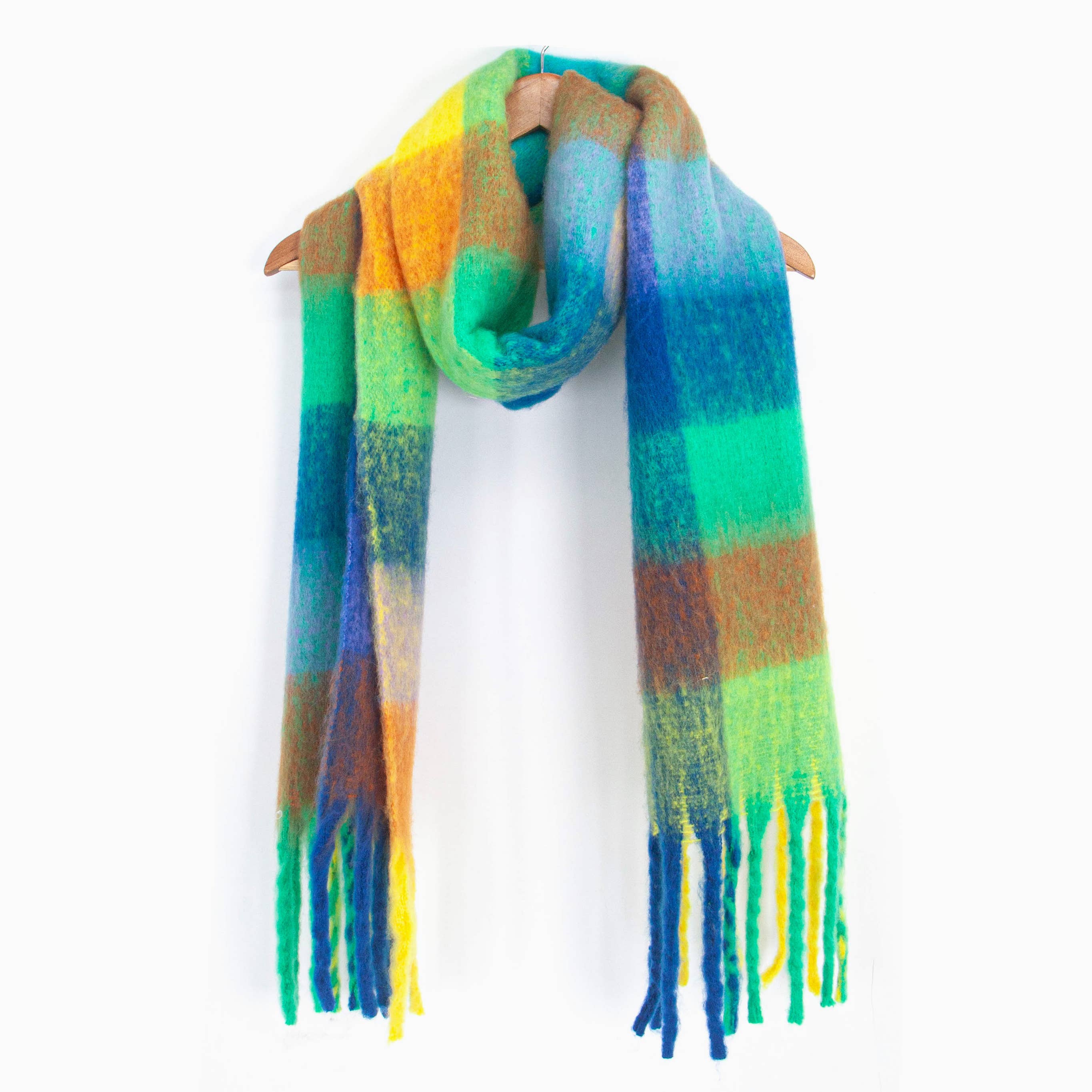 💝 PERFETTO PER Regalo per lei, regalo di Natale, caldo accessorio invernale 🧣 QUESTO PEZZO Una sciarpa invernale oversize realizzata in viscosa morbida al tatto. Presenta un design quadrato multicolore a blocchi di colore nei toni del verde e del verde con una frangia con nappine di ispirazione bohémien. Si abbina facilmente all'abbigliamento invernale per attività all'aperto. IN FORMA Sciarpa pesante 180 cm x 50 cm x 1 cm 🧵 TESSUTO Realizzato in morbida viscosa lavorata a maglia per una piacevole sensazione di calore. 100% viscosa Lavabile in lavatrice (delicato) Non stirare Fabbricato in Cina