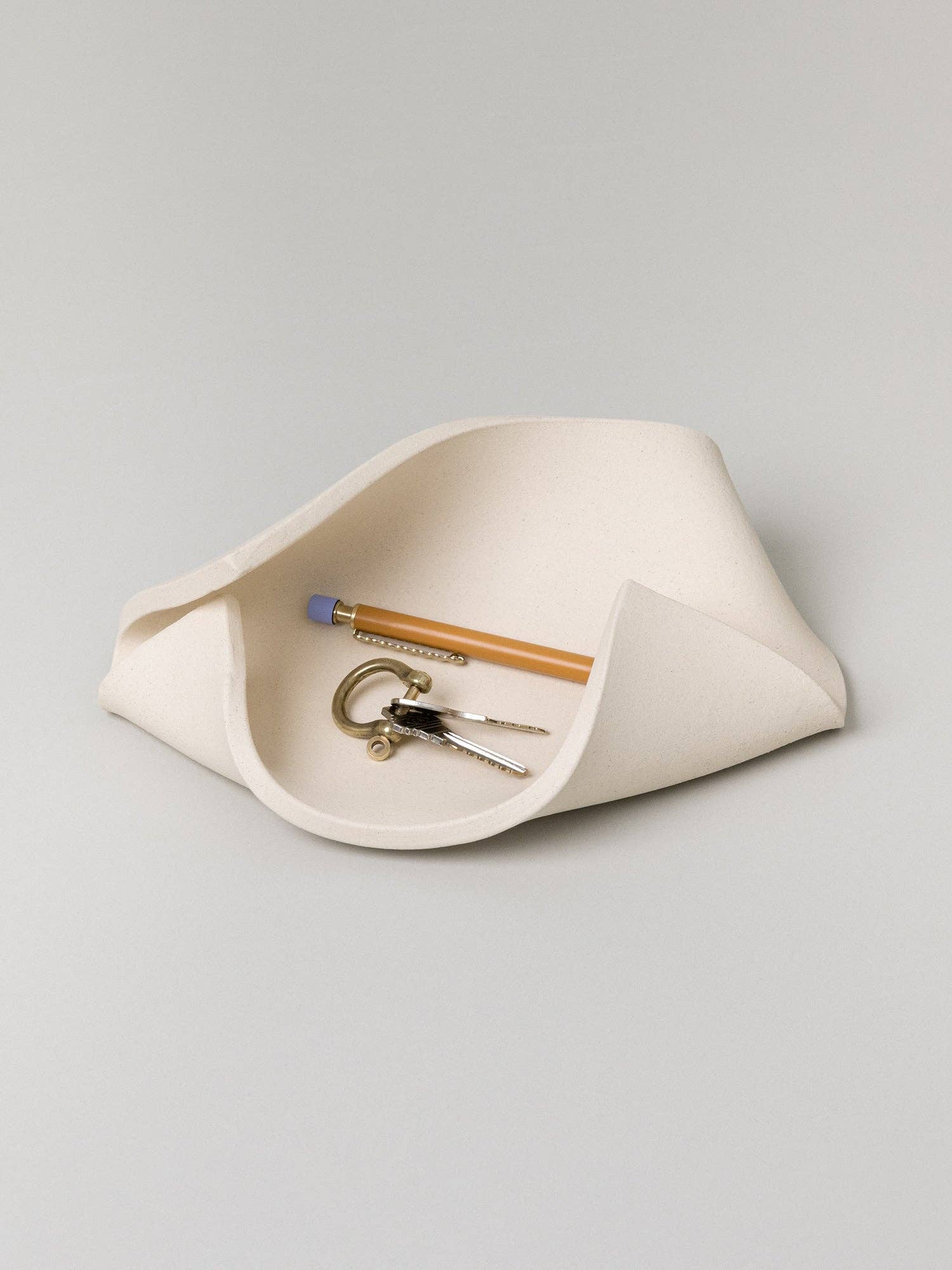 Drape sembra librarsi tra terra e cielo, la sua forma ondulata evoca il volo di una razza. Realizzato in argilla ossea grezza e non smaltata, le sue altezze di candele sfalsate creano un fluido e dinamico gioco di luci e ombre. Con un'aria di leggerezza radicata in un'ingegneria ponderata, Drape porta un'elevata eleganza a qualsiasi tavolo, sia illuminato che puramente scultoreo.