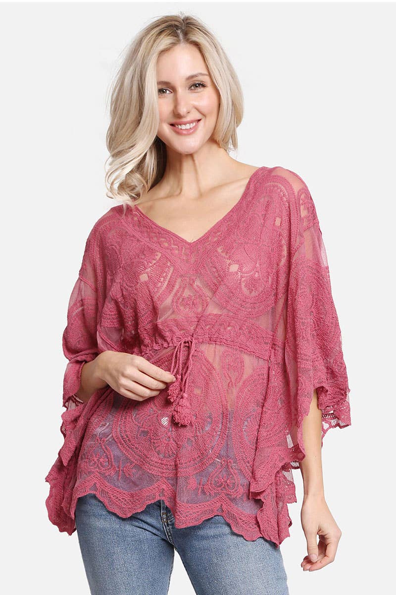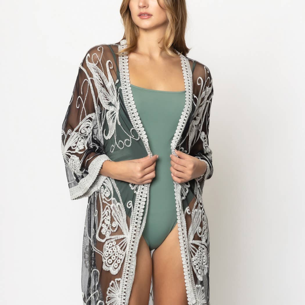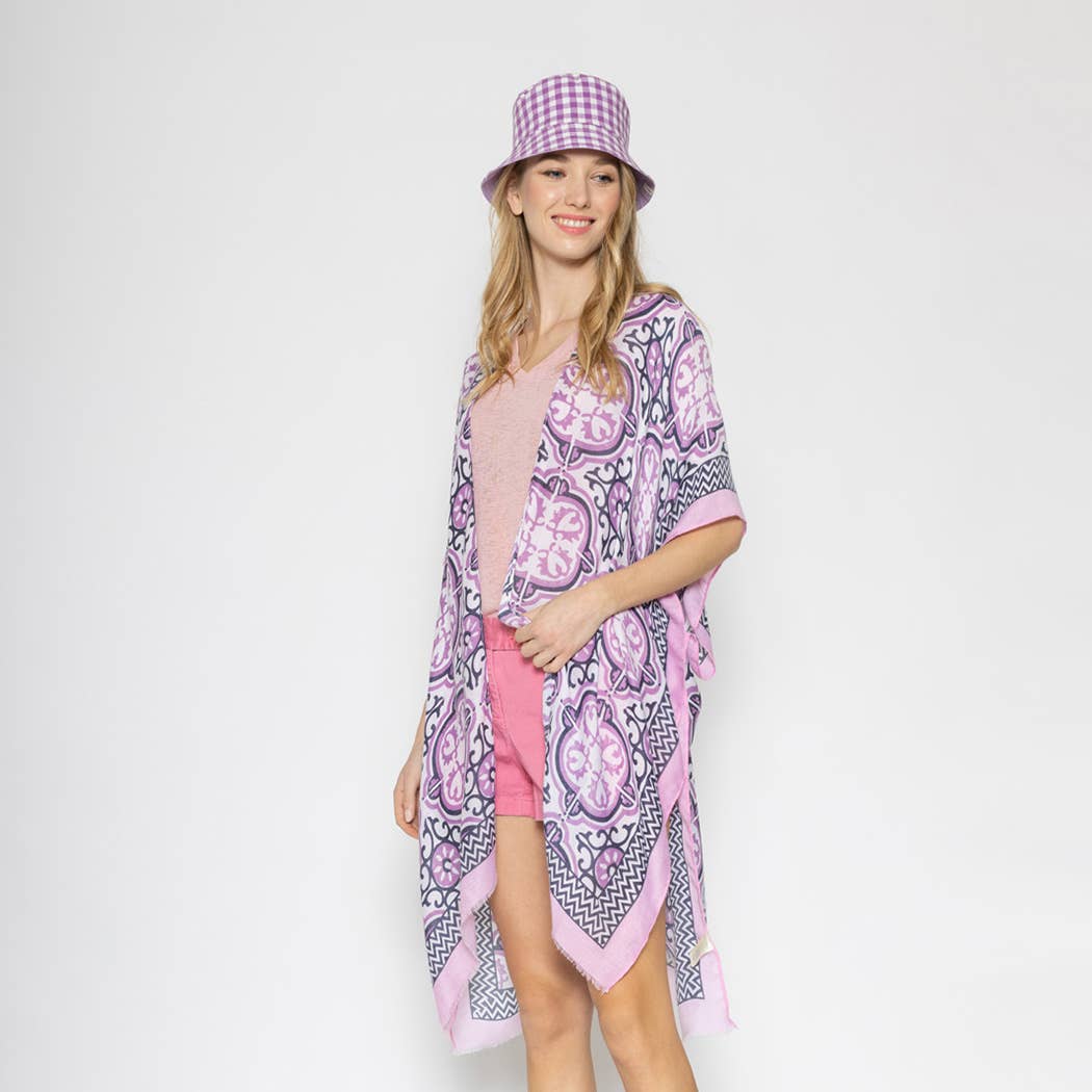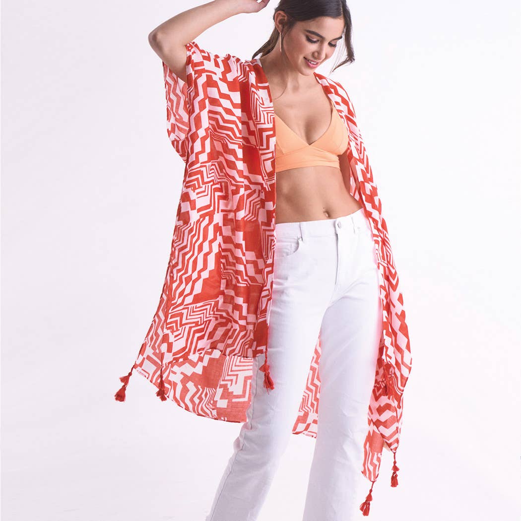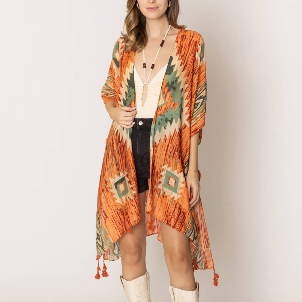 Kimono estivo con stampa azteca con nappine