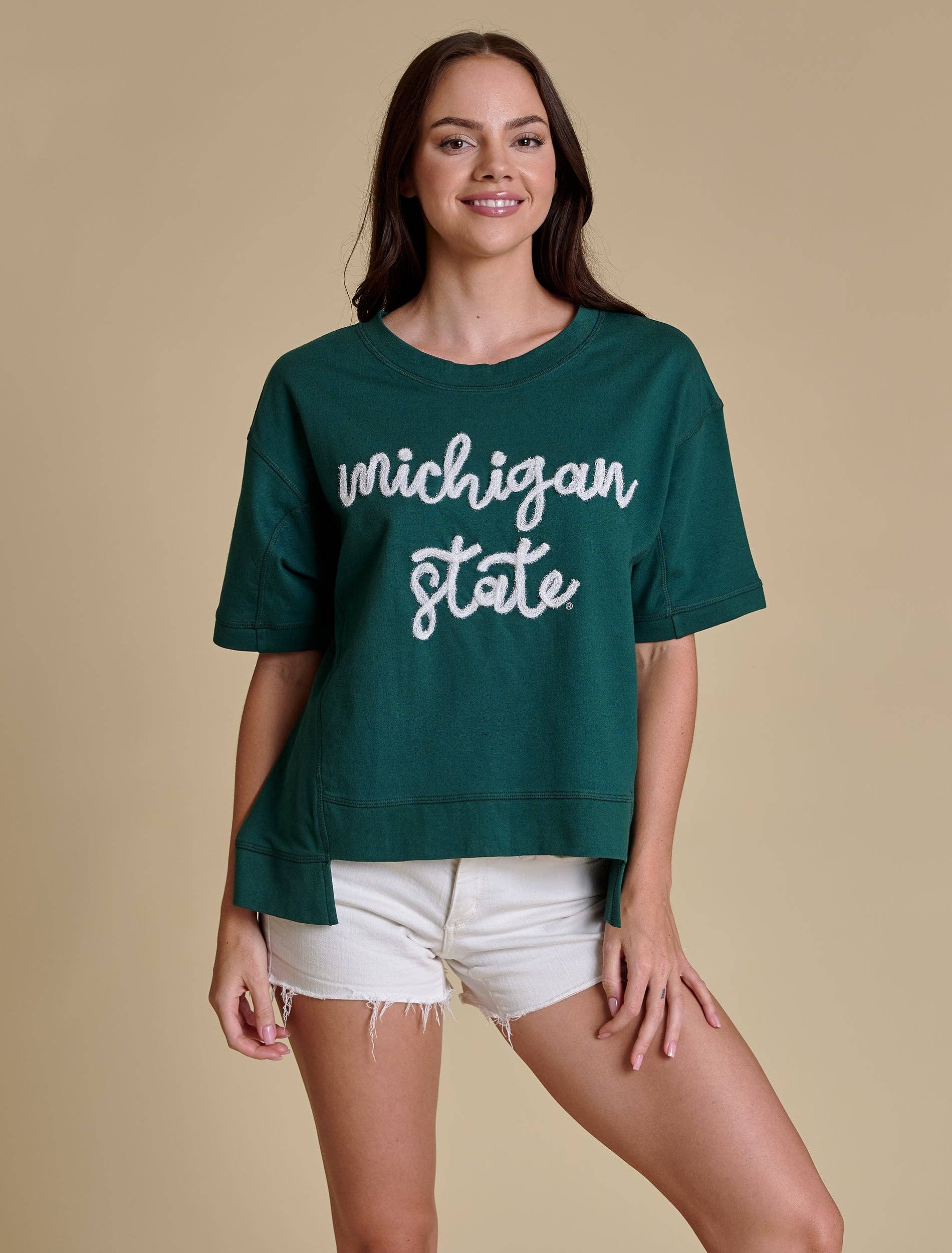 Dettagli Un capo essenziale audace con scintillio totale. Questa t-shirt boxy a maniche corte porta lo spirito di squadra al livello successivo, con una stampa completa di tigre ripetuta sul davanti e sul retro. Tagliata in una silhouette rilassata, è la definizione di cool che incontra chic. La stiamo abbinando a una mini di paillettes e bracciali chunky per un tocco di glamour, oppure oversize con pantaloncini da biker e una borsa a tracolla per un look disinvolto. Perché ne siamo ossessionati: - Vestibilità rilassata con silhouette boxy - Ripetizione completa di paillettes di loghi + marchi su entrambi i lati - Leggero e non foderato per una facile stratificazione - Sembra una t-shirt, sembra una dichiarazione Materiale: 100% Cotone Jersey Cura: Lavare in lavatrice i colori scuri separatamente. Asciugare solo appeso. Non candeggiare. Non stirare la decorazione. Taglie Vestibilità rilassata La modella indossa una taglia S Misure - XS larghezza: 48 cm, lunghezza: 51,5 cm - SM larghezza: 51 cm, lunghezza: 53 cm - MD larghezza: 53 cm, lunghezza: 55 cm - LG larghezza: 56 cm, lunghezza: 57 cm - XL larghezza: 59 cm, lunghezza: 59 cm - 2X larghezza: 62 cm, lunghezza: 61 cm - 3X larghezza: 65 cm, lunghezza: 63 cm Le misure di larghezza indicano la larghezza del petto da lato a lato. Le misure di lunghezza indicano la lunghezza dal punto più alto della spalla all'orlo.