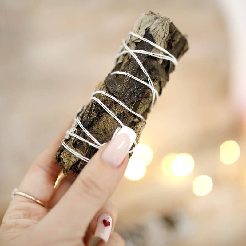 Realizzato con salvia bianca biologica della California del Sud, questo fascio per purificare è legato a mano con spago di cotone e impreziosito da fiori bianchi di sinuata. Il fascio include un bastoncino di salvia bianca sinuata, un bastoncino di palo santo, un bastoncino di selenite e un ciondolo a forma di sole, tutti uniti da un nastro di twill di cotone. Ottimo come regalo o elemento decorativo per la casa. Per l'uso, sciogliere il nastro di twill di cotone e separare i pezzi. La salvia bianca con sinuata e il palo santo possono ora essere bruciati separatamente. La selenite e il ciondolo a sole possono essere conservati per sempre. Con una lunghezza di 10 cm, i bastoncini di salvia sono della misura ideale per una singola sessione di purificazione. Realizzati con salvia apiana coltivata biologicamente in una fattoria biologica in California del Sud, utilizzando pratiche agricole sostenibili.
