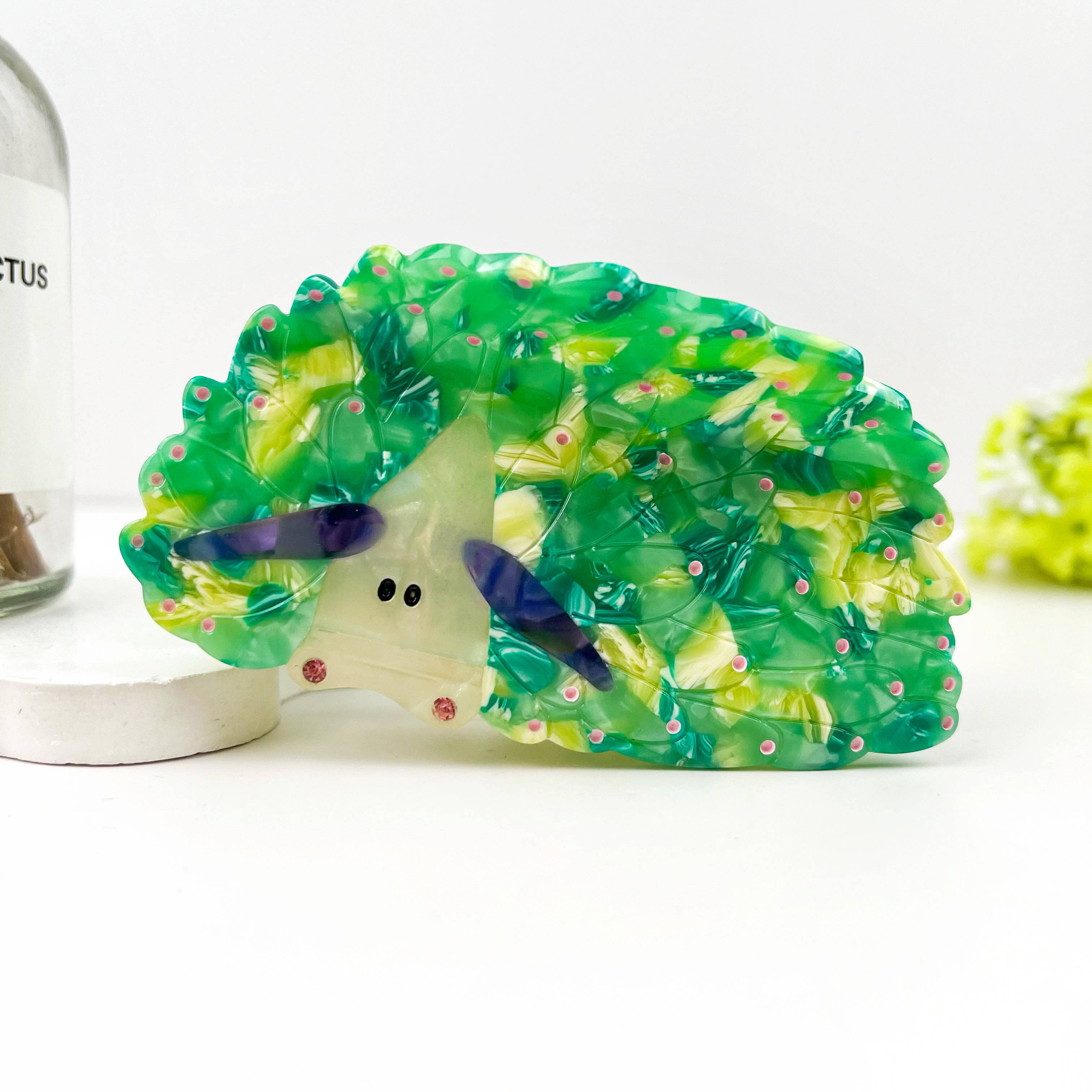 Materiale: acetato Processo di manipolazione: fatto a mano Dimensioni: 8,5 cm Peso: 30g Descrizione: Dai un tocco di fascino stravagante alla tua acconciatura con il nostro fermaglio creativo ed ecologico per capelli a chiocciola. Questo accessorio unico combina un design ecologico con una creatività giocosa, rendendolo un pezzo straordinario nella tua collezione di accessori per capelli. Caratteristiche principali: Design stravagante a forma di lumaca: il fermaglio per capelli presenta un affascinante motivo a chiocciola che aggiunge un elemento divertente e stravagante al tuo look. Perfetta per chi ama gli accessori ispirati alla natura con un tocco in più, questa clip ti fa sorridere migliorando il tuo stile. Materiale ecologico: realizzato con materiali ecologici, questo fermaglio per capelli riflette un impegno per la sostenibilità. Che sia realizzata in acetato biodegradabile o plastica riciclata, la clip è progettata per ridurre l'impatto ambientale pur mantenendo un'alta qualità. Durevole e duraturo: nonostante la sua costruzione ecologica, questa clip è costruita per durare.