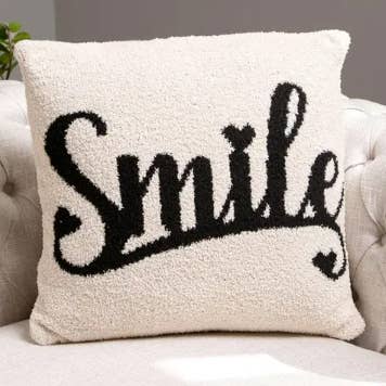 Copricuscino con motivo a sorriso • Misure disponibili: 18" X 18", 20" X 20" • Materiale: 100% Microfibra di Poliestere • Cura: Lavaggio in lavatrice - Freddo, Non candeggiare, Asciugare in piano, Non stirare, Non lavare a secco • Cuscino non incluso Cuscino decorativo alla moda con un motivo giocoso di faccine sorridenti, perfetto per aggiungere un tocco divertente e accogliente a qualsiasi spazio abitativo. Ideale per divani, letti o sedie d'accento.