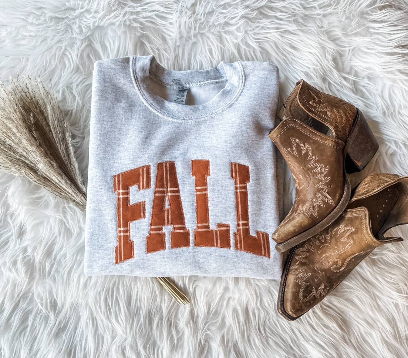 Girocollo ricamato in tartan autunnale