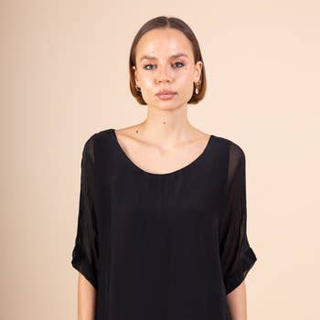 * Codice articolo: WOR6070 * Colore: viola * Con stampa integrale * Vestibilità stretta * Parte anteriore destra con logo in metallo * Materiale: 82% TENCEL™ Lyocell - 18% cotone biologico * Il nostro modello è 1,76 m di larghezza e indossa una taglia S