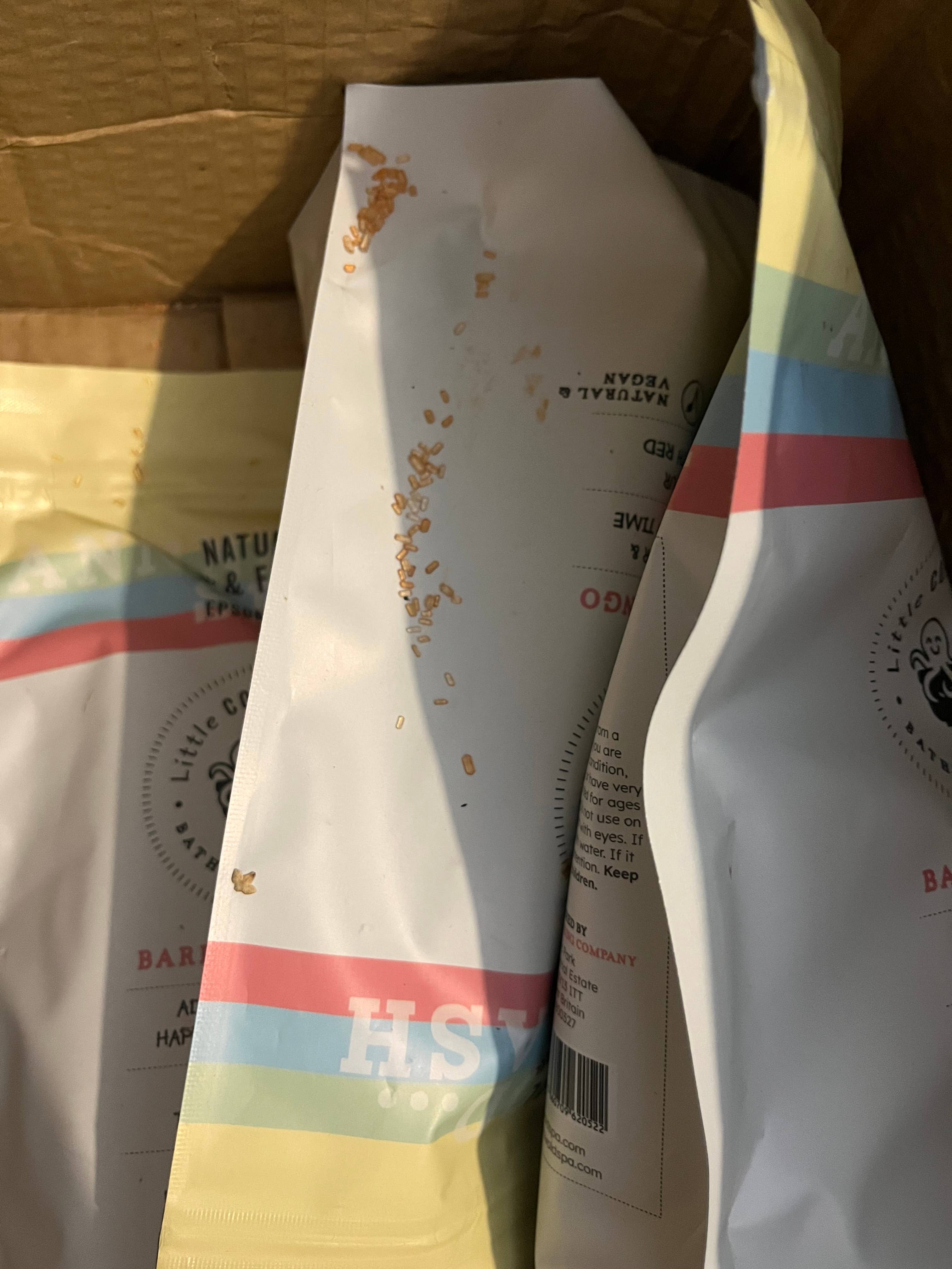 Grazie per aver dedicato del tempo a condividere il tuo feedback e mi dispiace davvero sentire delle condizioni in cui è arrivato il tuo ordine. Questo non è affatto lo standard che ci aspettiamo. Sembra che il pacco sia stato gestito male dal corriere, il che ha causato il danneggiamento dell'imballaggio e la fuoriuscita dei sali dalla busta. Abbiamo già segnalato la questione al corriere per evitare che accada di nuovo. Siamo anche in contatto con Faire per organizzare un rimborso per la spedizione, poiché vogliamo assicurarci che tu sia adeguatamente compensato per l'inconveniente. Grazie anche per la tua nota riguardo alle istruzioni in francese — stiamo attualmente rivedendo il nostro imballaggio e la documentazione per migliorare questo aspetto per i futuri ordini. Non esitare a contattare il nostro team di supporto clienti se hai bisogno di ulteriore assistenza. Apprezziamo davvero il tuo feedback e l'opportunità di rimediare. —Cotswold Spa Bathing Company • Nov 24, 2025