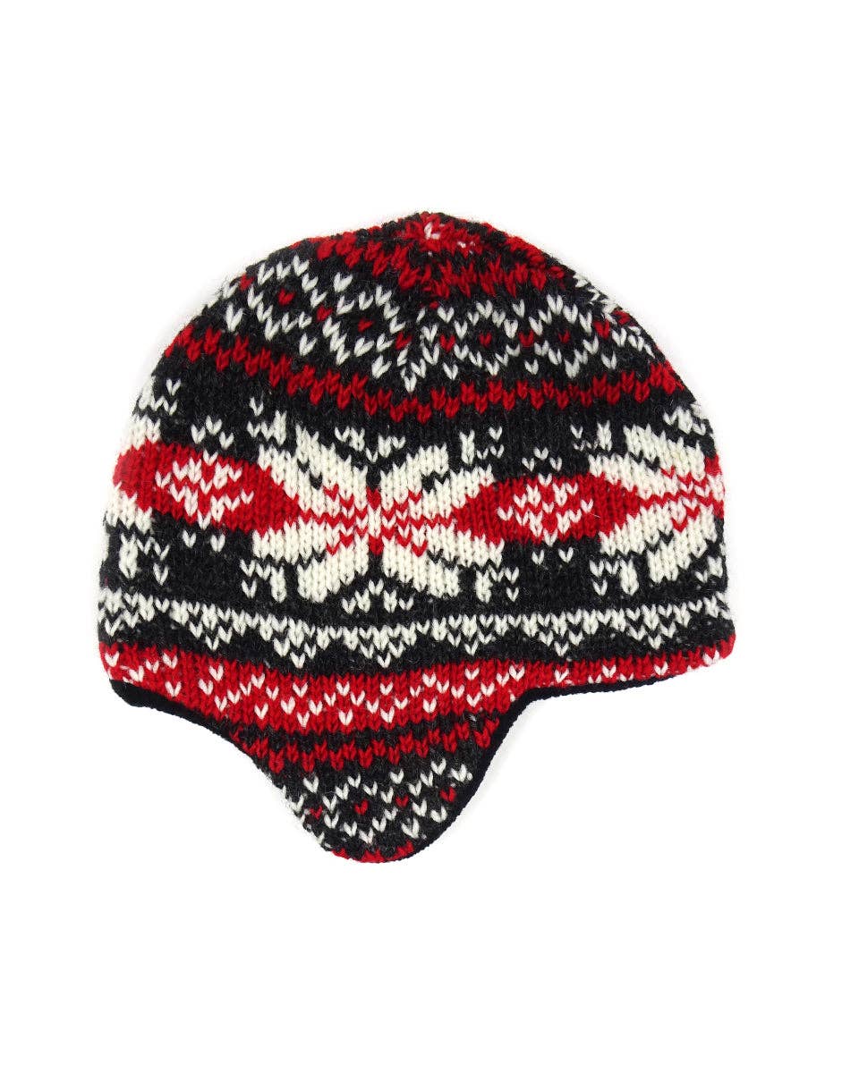 Questo berretto in stile 'trapper' presenta paraorecchie e un fiocco * 100% lana lavorata a maglia, foderato in pile * può essere abbinato ai guanti senza dita Zig Zag * fatto a mano in Nepal * SKU: ZZWOOH74