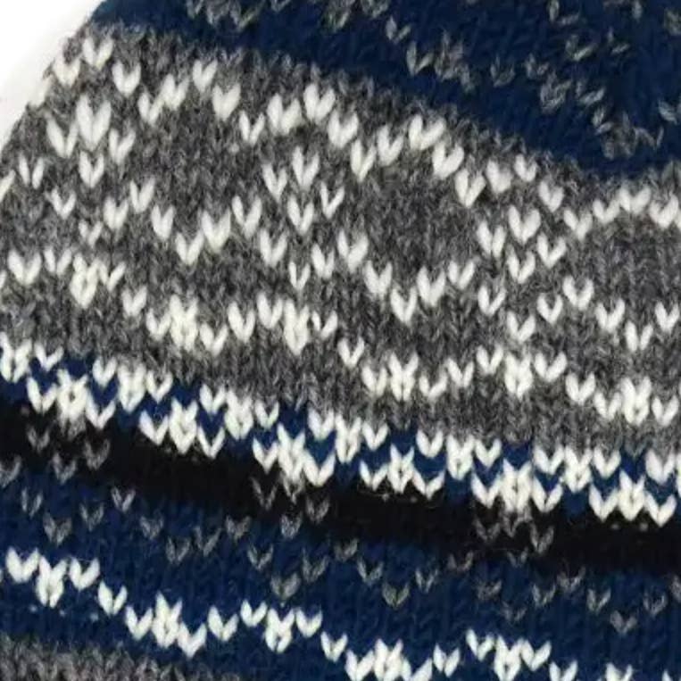 Berretto in lana lavorato a maglia bicolore con pompon