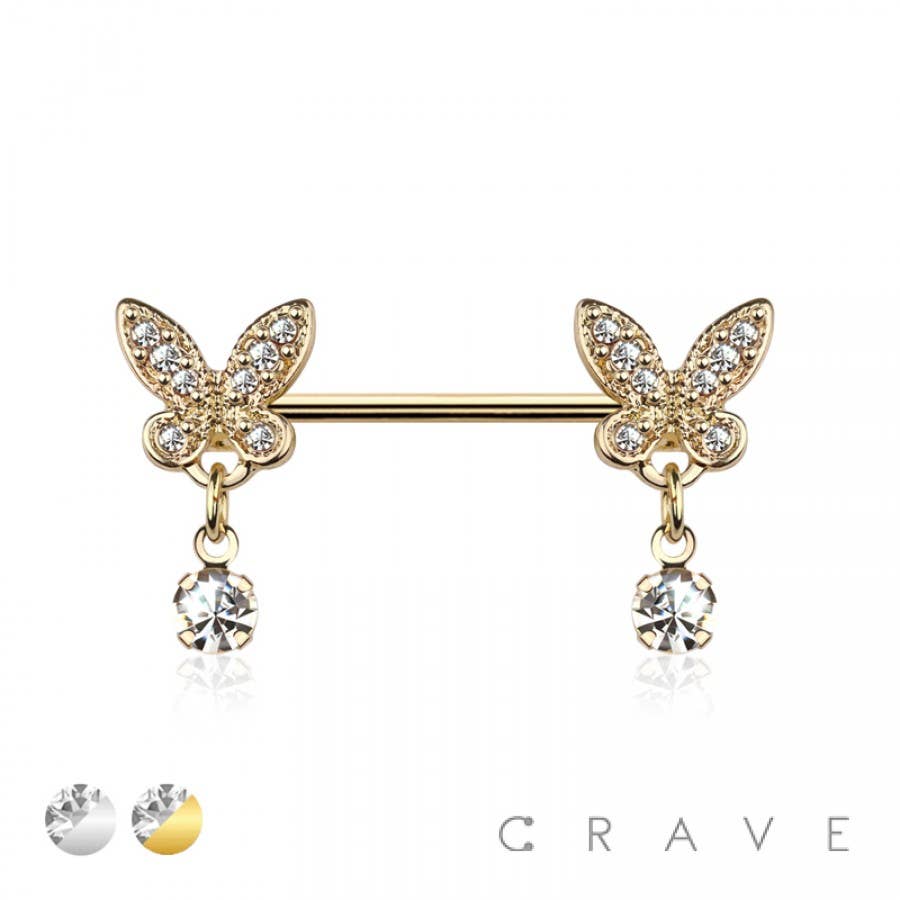 BARRA PER CAPEZZOLI IN ACCIAIO CHIRURGICO 316L CON DOPPIO GIRO CZ IN VENDITA ALL'INGROSSO