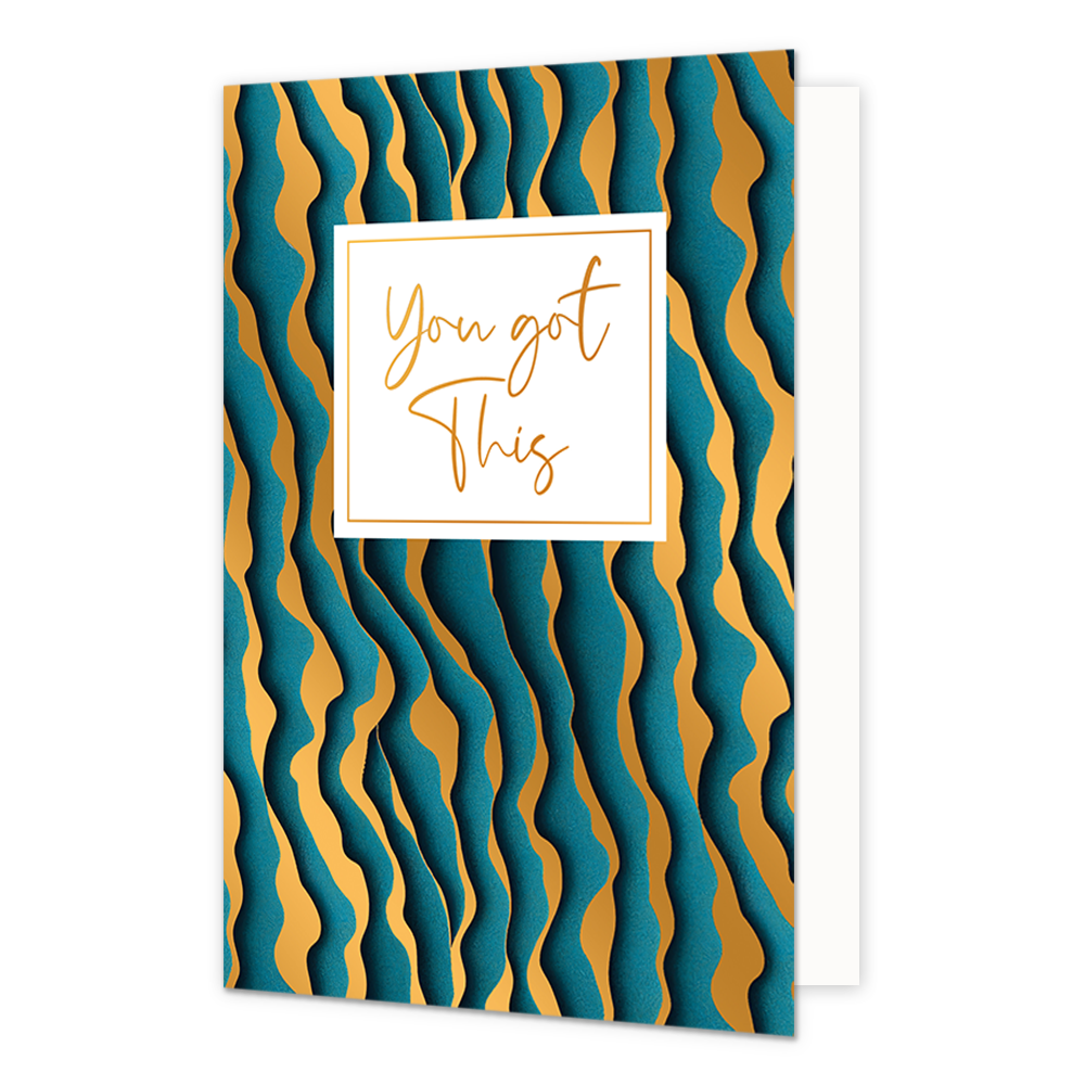 Eleva qualsiasi celebrazione con questo splendido biglietto della collezione Gold Rush, dove l'eleganza incontra l'emozione. Presenta un ricco design astratto in blu oceanico e verde smeraldo, arricchito con lussuosi dettagli in oro, oro rosa e fogli olografici, questo biglietto emana raffinatezza. Le parole "Un altro anno di avventure" sono impresse in lucente lamina metallica, catturando lo spirito di scoperta e celebrazione. Stampato su cartoncino di alta qualità e misurando 17 x 12 cm, ogni biglietto è abbinato a una busta dorata scintillante per un tocco finale perfetto. I dettagli multi-foil e l'embossing tattile rendono questo design davvero eccezionale, ideale per compleanni, traguardi o semplicemente per ispirare. Un audace classico contemporaneo che richiede attenzione e offre fascino.