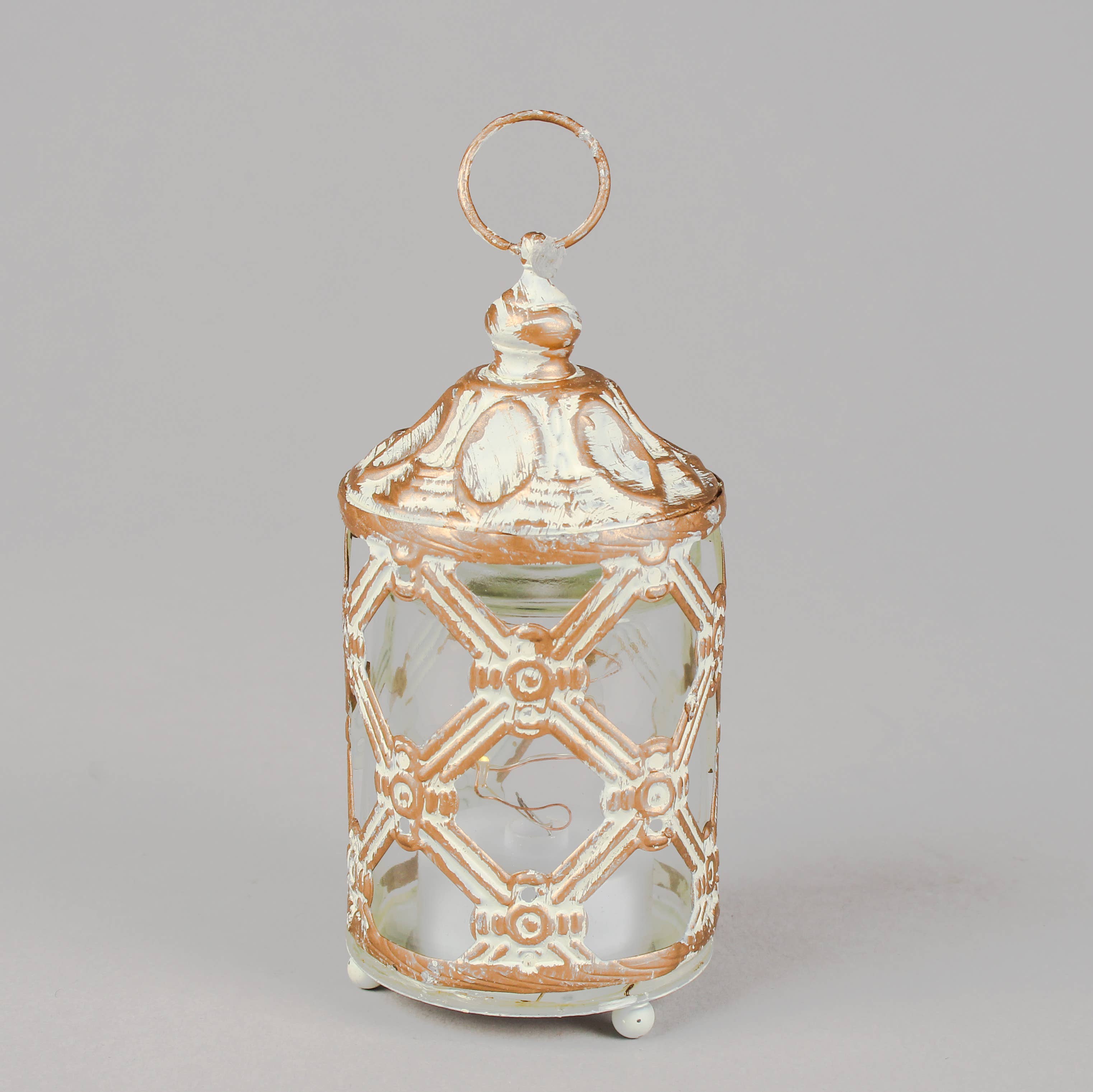 Lanterna in vetro tagliato con dettagli in metallo dorato