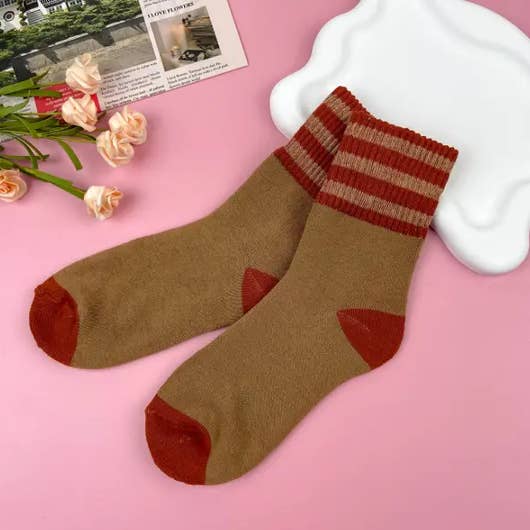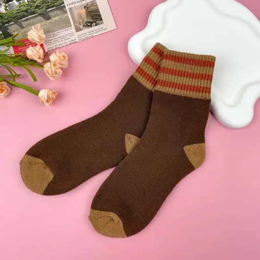 Motivo - Tinta unita Stile - Vintage Taglia - Taglia unica (37-39 Yards) Ingredienti: 75% Poliestere, 12% Spandex, 8% Lana, 5% Acrilico Descrizione del prodotto: Fai un salto indietro nel tempo con i nostri Calzini Spessi e Caldi a Righe Retro a Mezza Gamba. Combinando righe ispirate al vintage con calore moderno, questi calzini sono un'aggiunta elegante e accogliente ai tuoi essenziali invernali. Caratteristiche principali: Design a Righe Senza Tempo: Il motivo a righe ispirato al retrò aggiunge un tocco classico al tuo guardaroba invernale, creando un look elegante e versatile. Spessore Premium: Goditi un calore eccezionale con lo spessore aggiunto di questi calzini, offrendo comfort anche nei giorni più freddi. Lunghezza a Mezza Gamba: Versatili e chic, questi calzini arrivano a mezza gamba, rendendoli adatti a vari stili di calzature e offrendo la giusta copertura. Durevoli e Affidabili: Realizzati per durare nel tempo, questi calzini sono costruiti per resistere all'usura quotidiana e ai frequenti lavaggi, garantendo che rimangano una parte affidabile della tua collezione invernale.