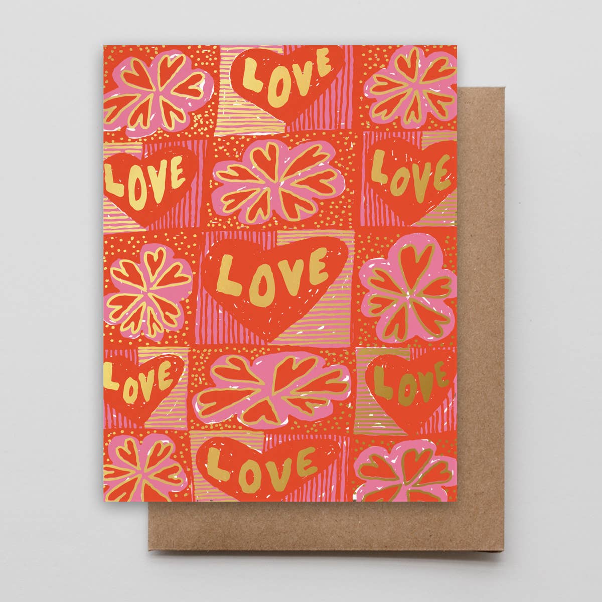 Biglietto pieghevole pretagliato con busta in carta kraft. Stampa tipografica e stampa a caldo su copertina riciclata da 110 libbre. Interno bianco. Dimensioni del biglietto: 4,5" x 5,75" (piegato). Confezionato in sacchetto compostabile certificato con acido polilattico vegetale (PLA). Progettato e stampato in tipografia nel nostro studio di Kansas City, Missouri. Prodotto negli Stati Uniti.