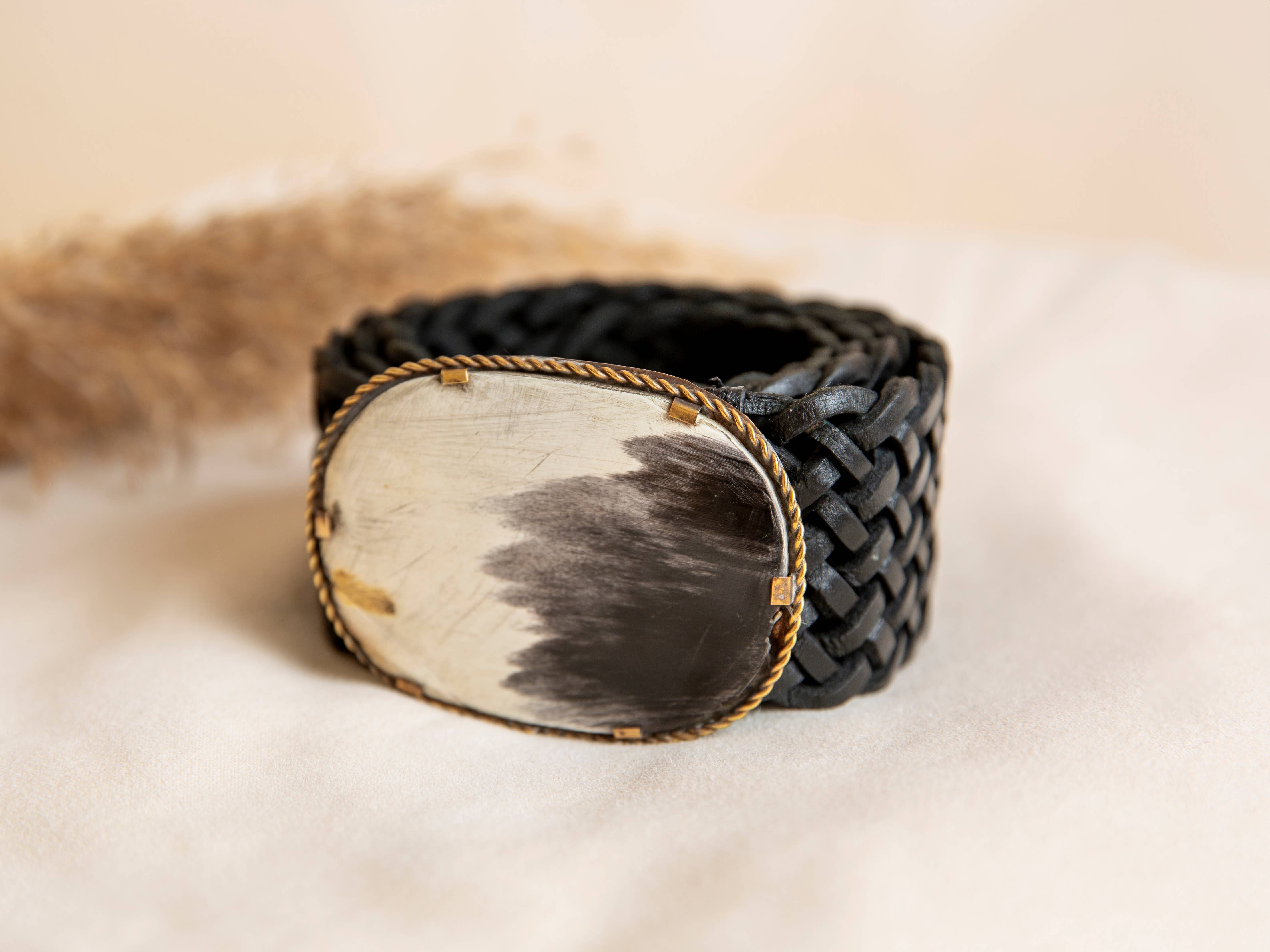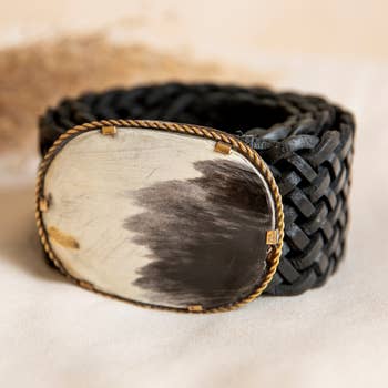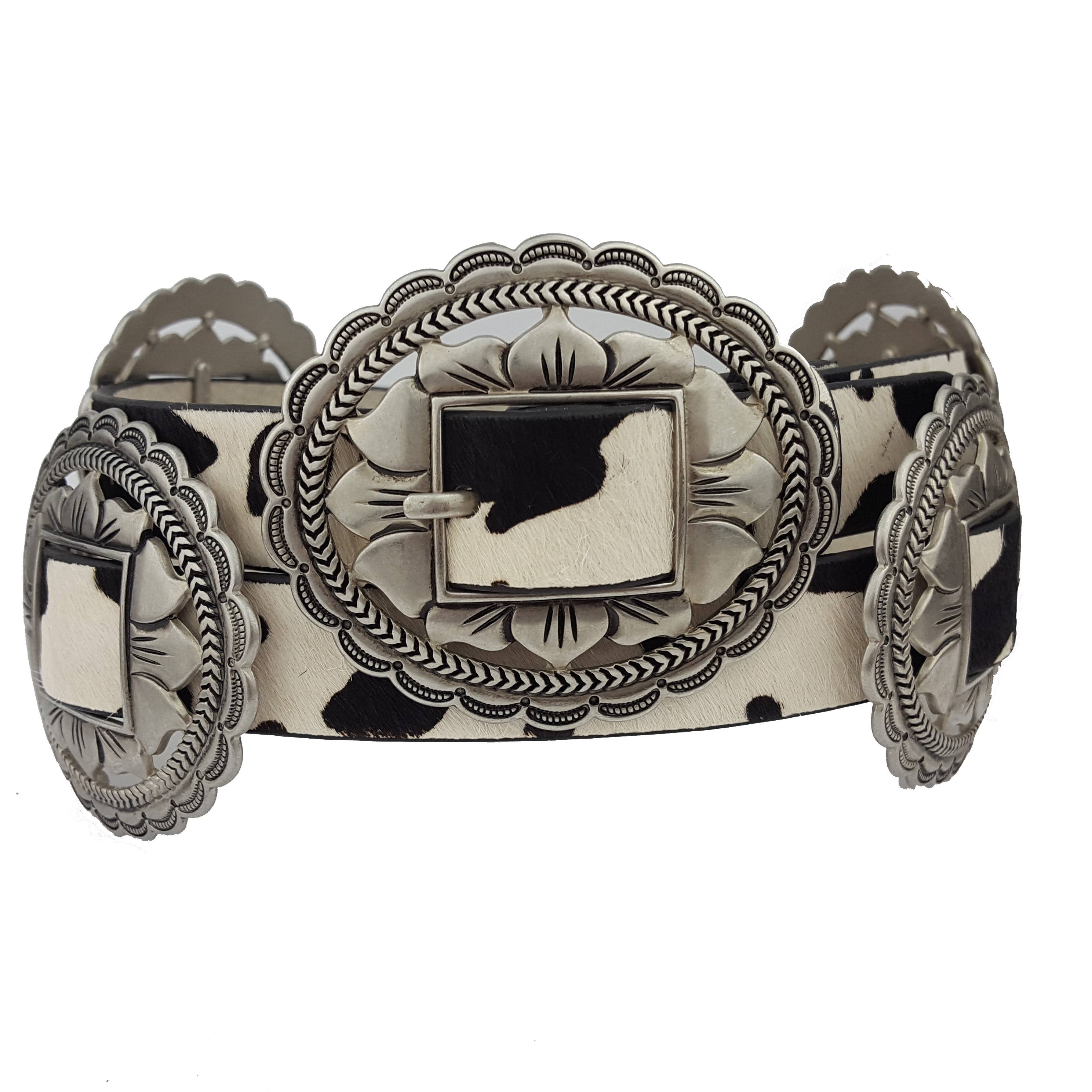 Cintura concho floreale ovale occidentale con vero pelo di mucca