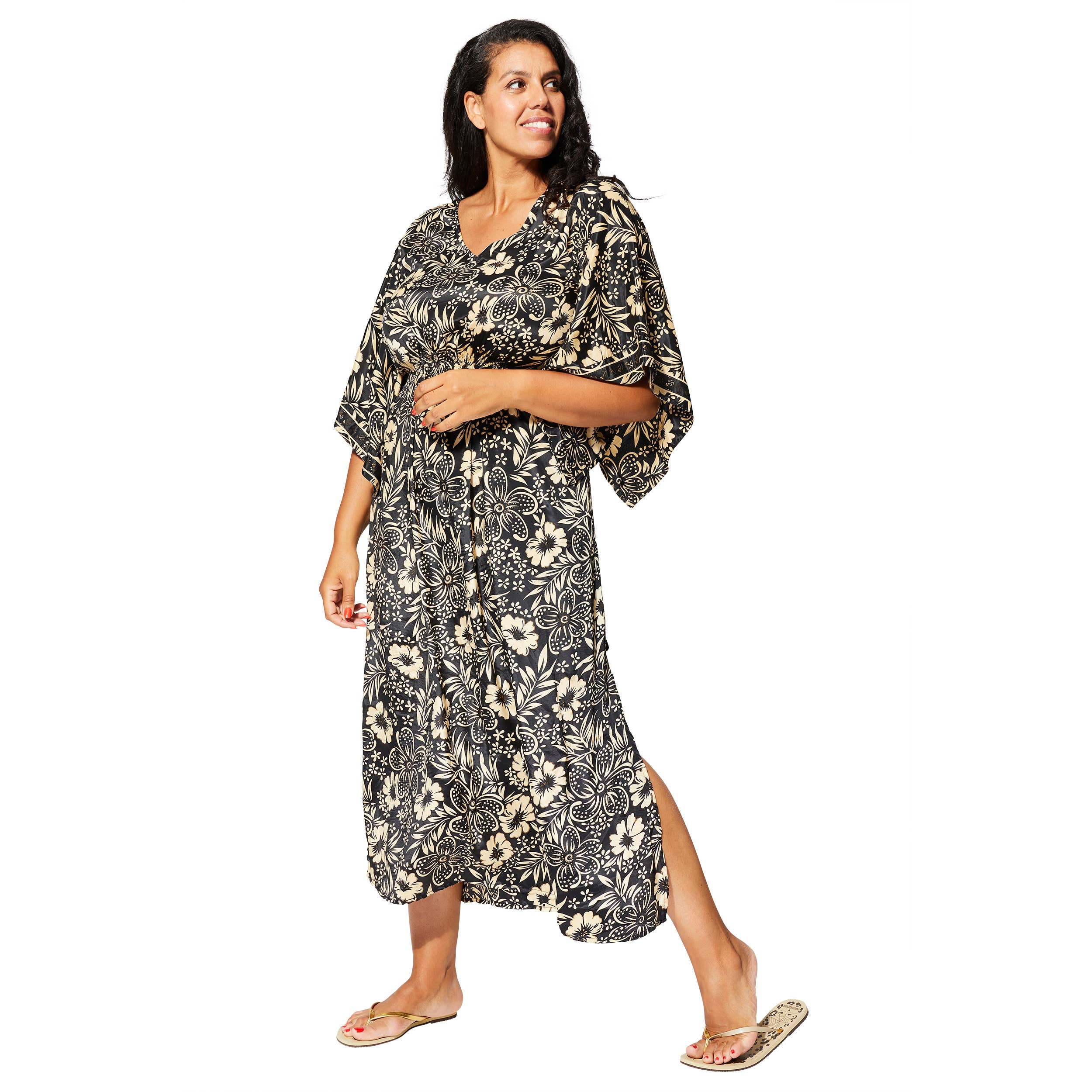 Abito lungo estivo con maniche corte e ampie, MCMAXIP0010H