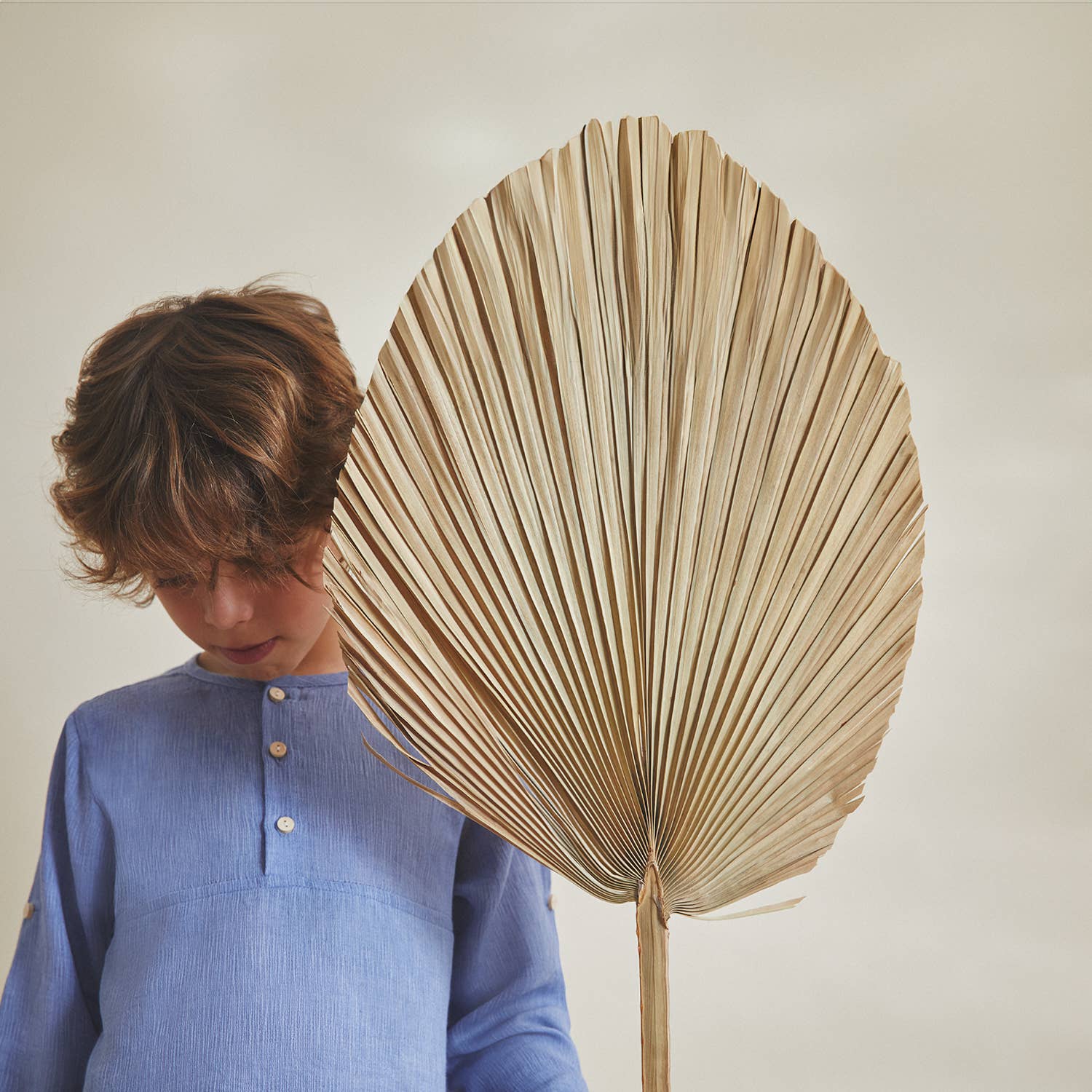 Camicia da cerimonia per bambino in colore acquamarina, con collo alla mao.