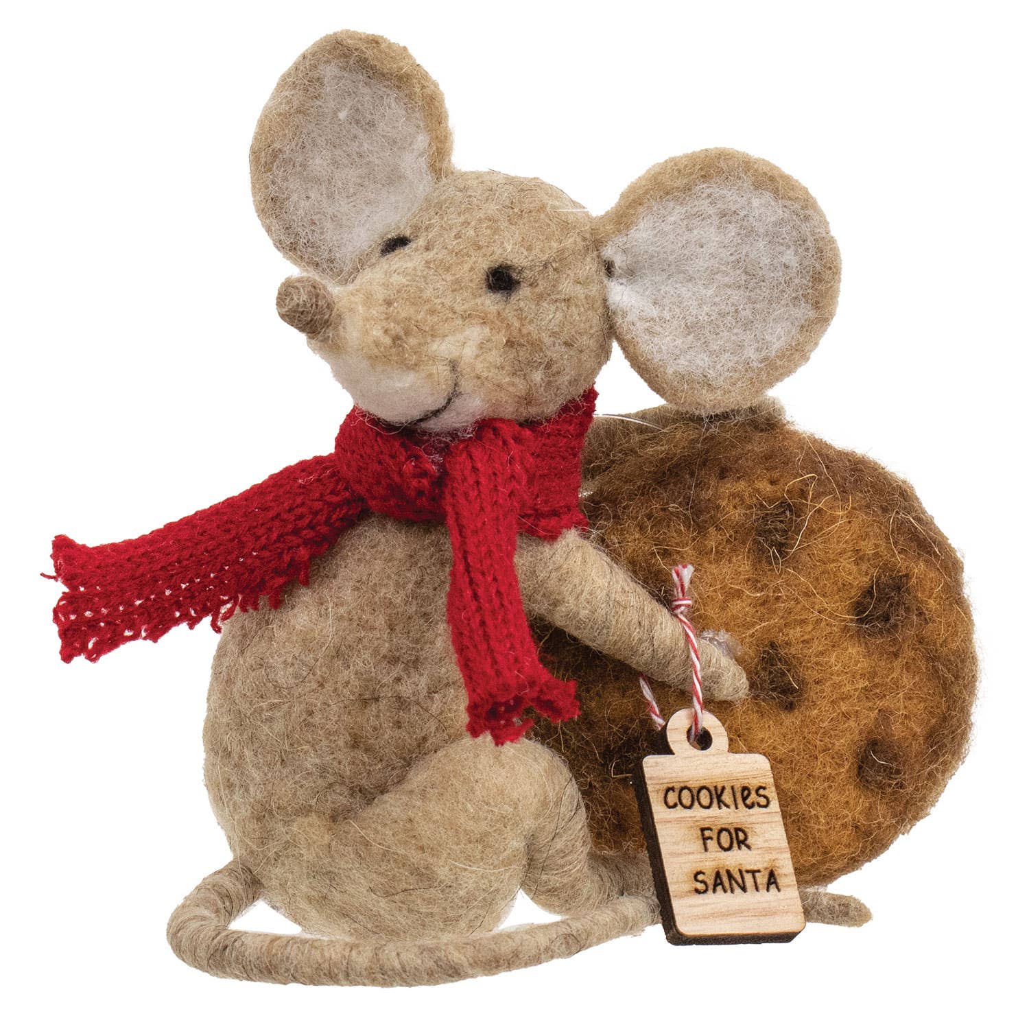 Decorazione natalizia con topolino in feltro che tiene un biscotto per Babbo Natale all'ingrosso