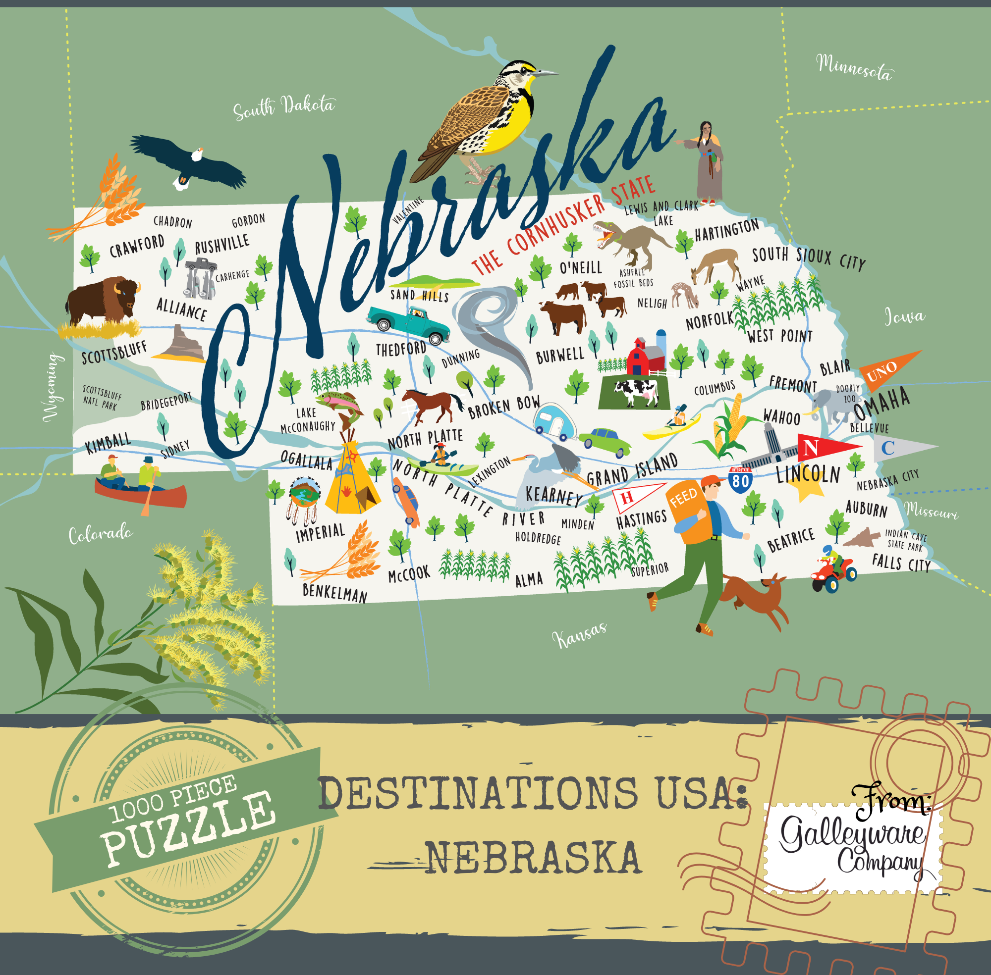 Tutti i nostri puzzle Destinations USA sono realizzati con materiali riciclati. I pezzi completamente intrecciati e di forma casuale creano una piacevole esperienza di costruzione di puzzle. Ogni puzzle è prodotto su cartoncino spesso e di qualità perfetto per il montaggio e l'incorniciatura. Questo puzzle include 1000 pezzi e misura 19,69" x 27,56" quando completato. **CUSTODIA COMPLETA = 20 PUZZLE**