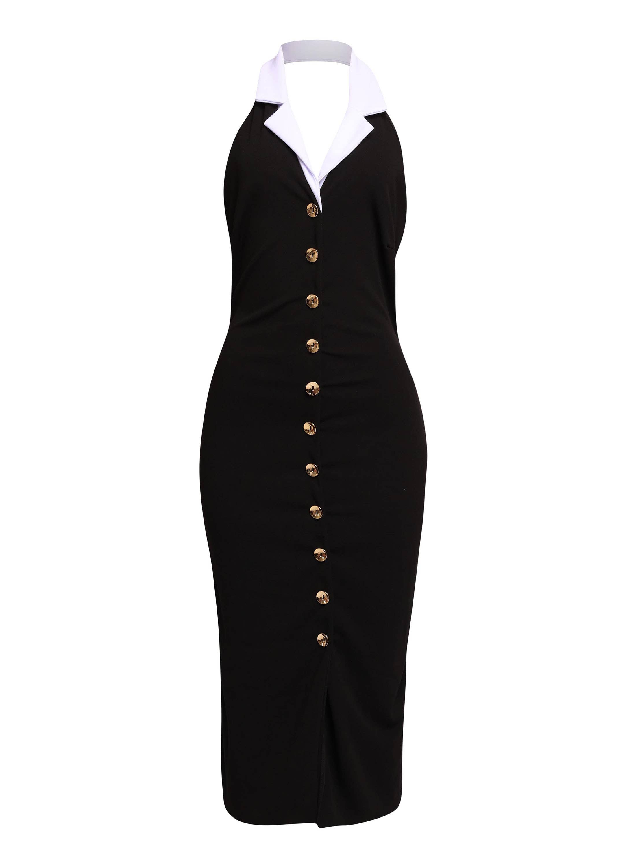Abito lungo in pizzo con colletto Accent e spacco all'ingrosso