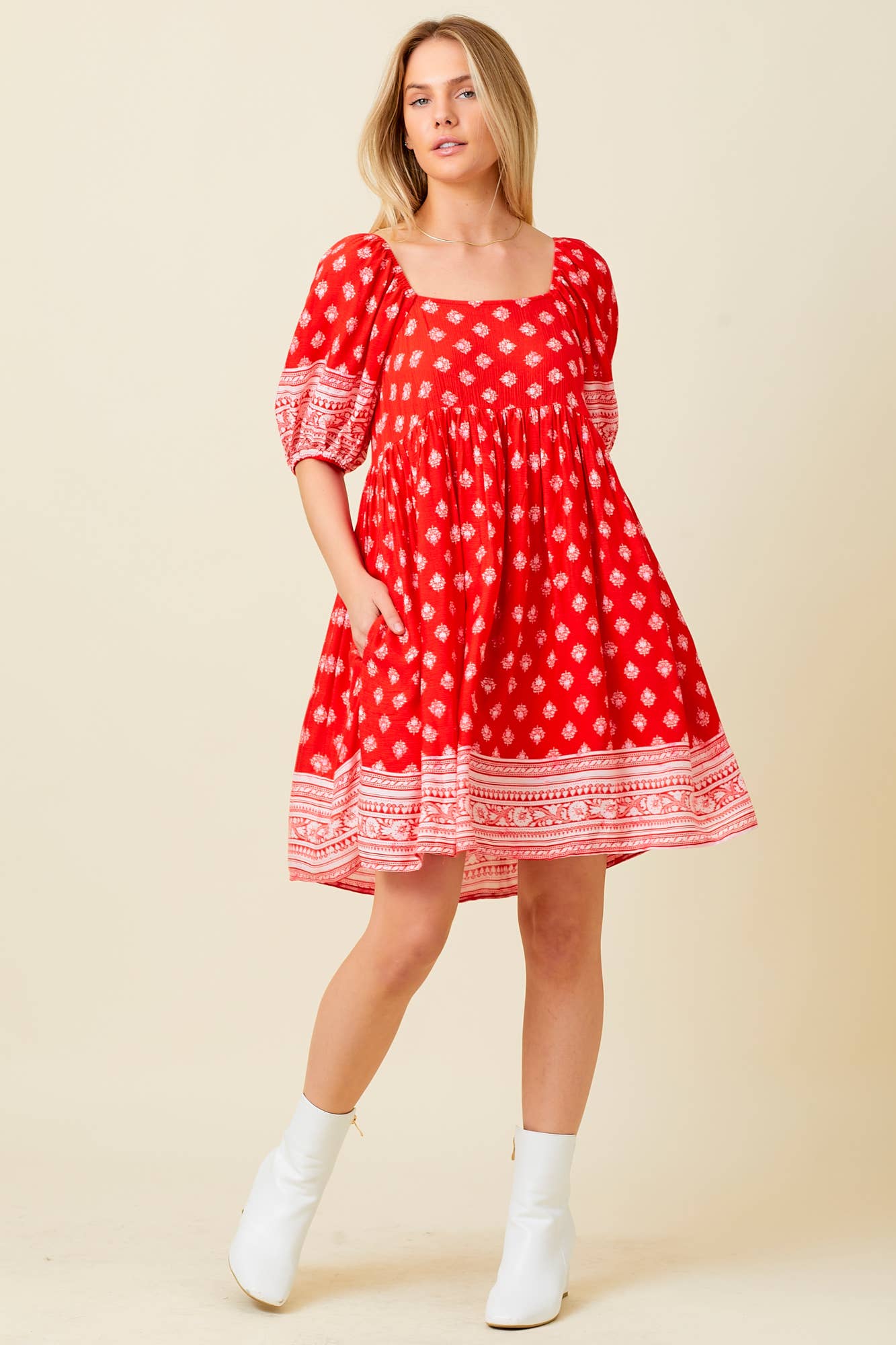 ABITO LUNGO A STAMPA FLOREALE CON SCOLLO QUADRATO