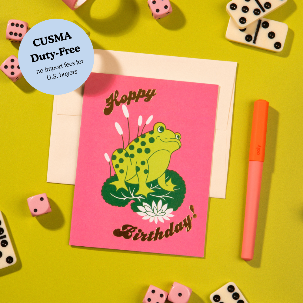 I nostri biglietti di auguri firmati sono progettati per deliziare, con grafiche audaci, cartoncino di alta qualità e il giusto tocco di lucentezza. Ogni biglietto è vuoto all'interno, così puoi dire esattamente ciò che intendi (divertente, sincero o entrambi). Dettagli: ✿ Formato A2 (4,25" x 5,5") ✿ Stampato su cartoncino pesante con accenti in lamina d'oro ✿ Vuoto all'interno ✿ Abbinato a una busta coordinata ✿ Confezionato in una custodia protettiva biodegradabile ✿ Progettato e stampato a Hamilton, Ontario