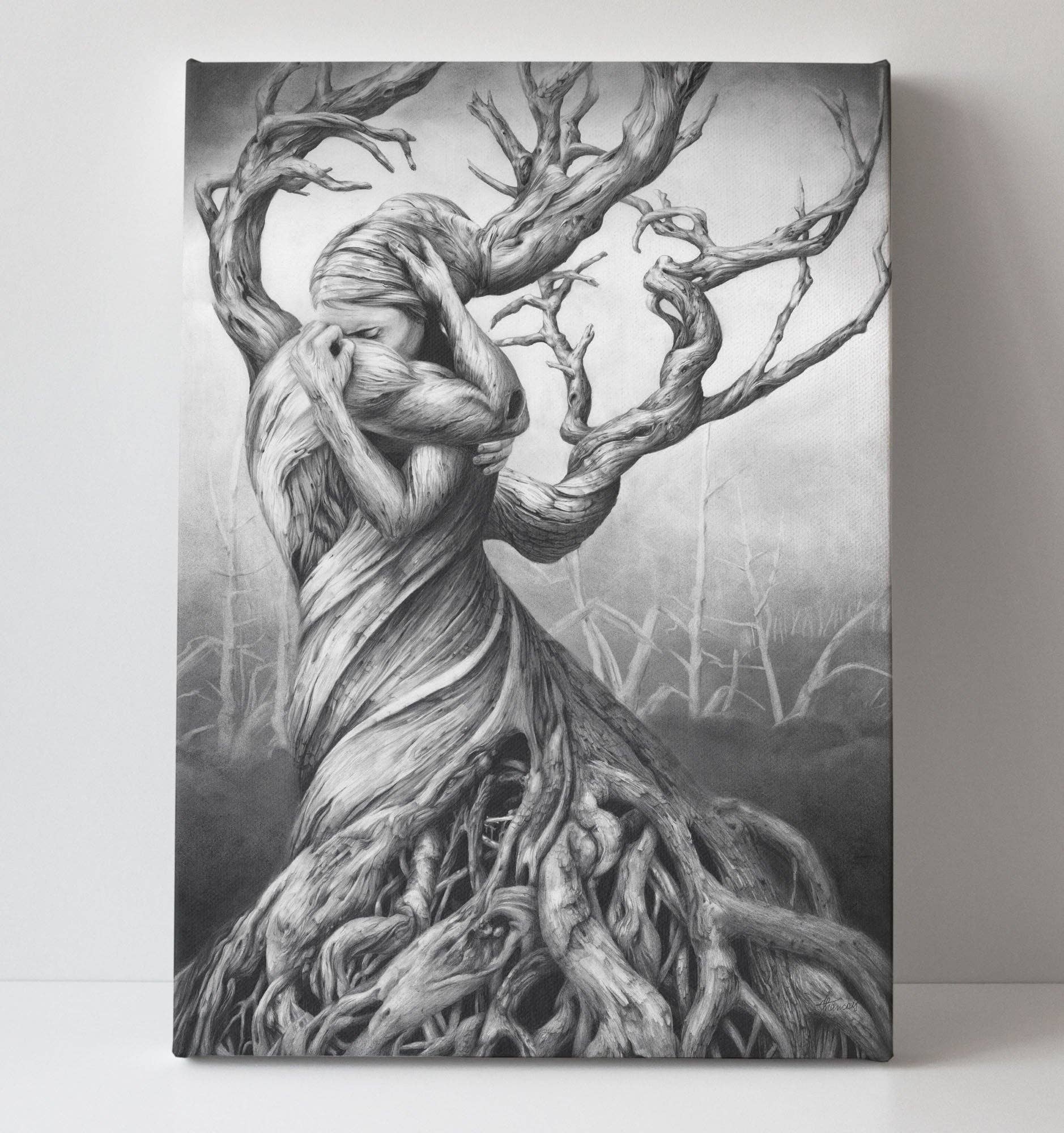Opera d'arte stampata su tela e galleria avvolta su una cornice di legno pronta da appendere. Quarto della serie Zodiac. Disegno a carboncino di una donna che personifica gli attributi del Cancro. Spedizione gratuita!!!! Sono necessari fino a 14 giorni per la consegna in Australia. Più a lungo a livello internazionale.