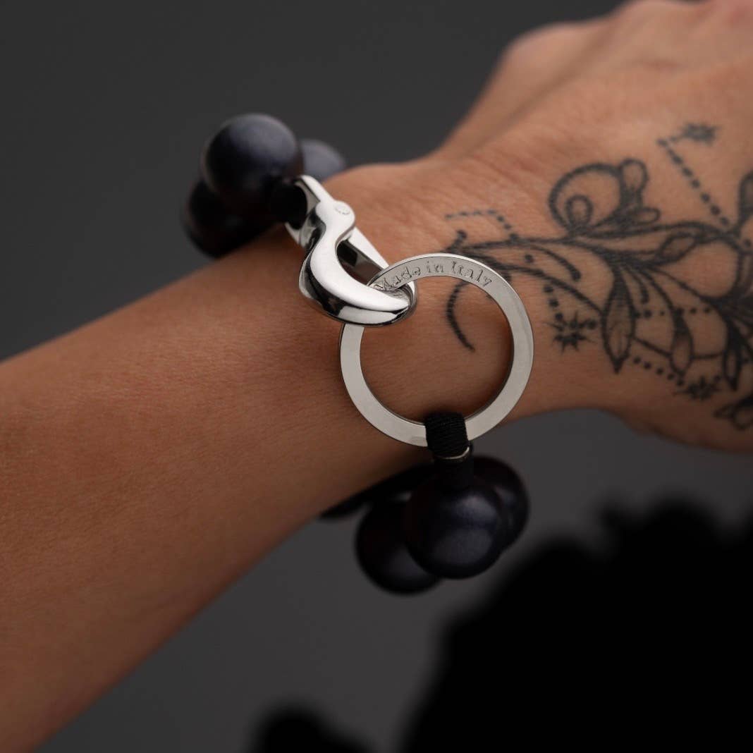 2 ciondoli in resina con rivestimento epossidico raffiguranti Finn e Jake (ciondolo da 6,3 cm) e BMO (ciondolo da 3,8 cm). I ciondoli sono attaccati a un cordino da polso lungo circa 5 pollici/13,2 cm con Lady Rainicorn.
