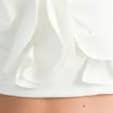 Caratteristiche: Davanti drappeggiato con pieghe stratificate, orlo asimmetrico, cinturino al collo incrociato, chiusura con cerniera posteriore. Vestibilità : Aderente, lunghezza corta Tessuto: Misto tessuto strutturato con leggera struttura e tocco morbido