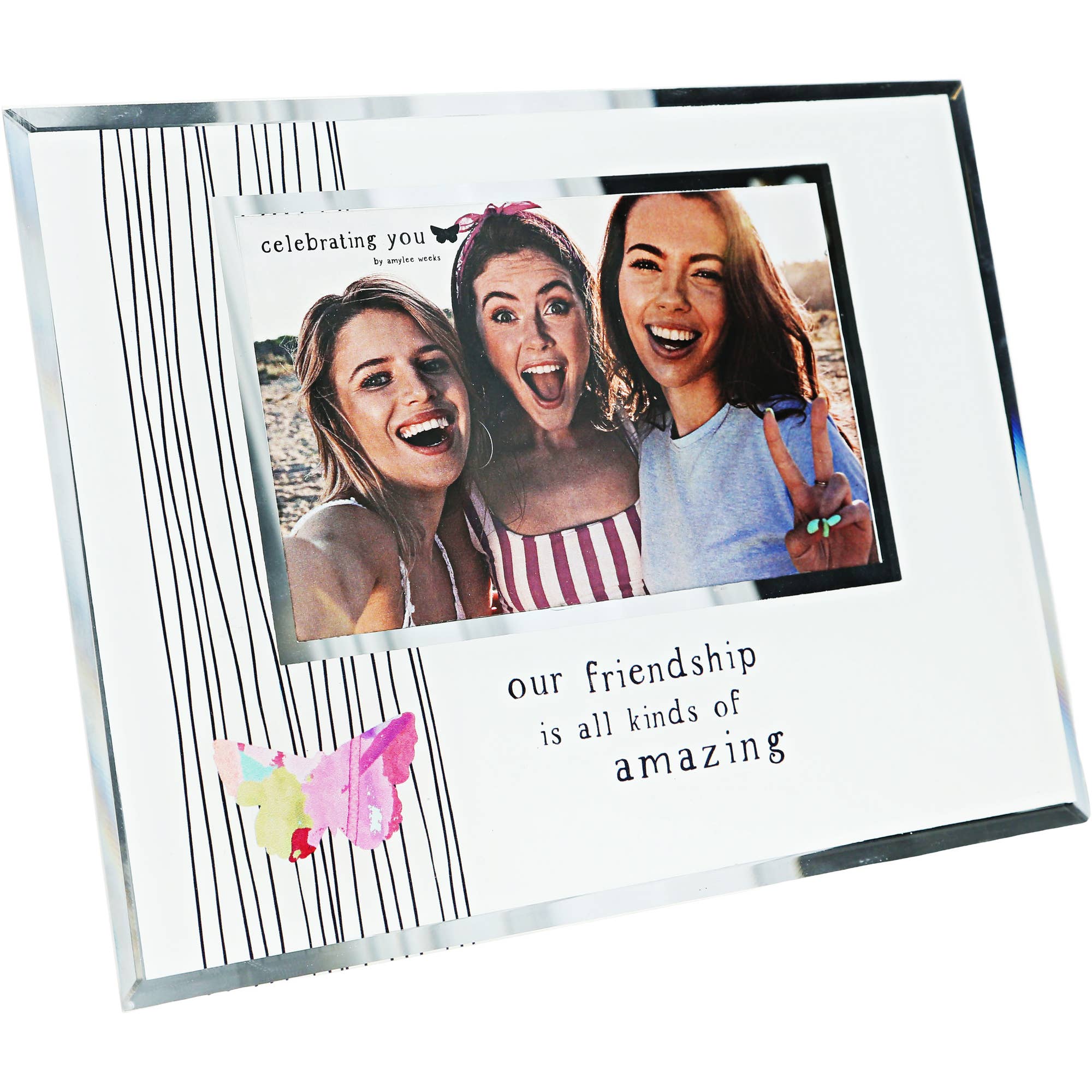 SKU: 51119 Paese di produzione: Cina Colore: Bianco e Grigio Materiale: Legno e Vetro Occasione speciale: Generici Stagione: Tutto l'anno Stile: Moderno Tema: Amici e parenti Lingua del prodotto: Inglese Peso: 453,59 g (1 lb) Dimensioni: 27,9 x 1,3 x 19,1 cm (11 x 0,5 x 7,5 in)