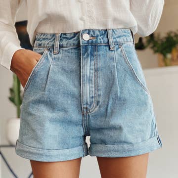 Shorts a vita alta in denim scuro Judy Blue