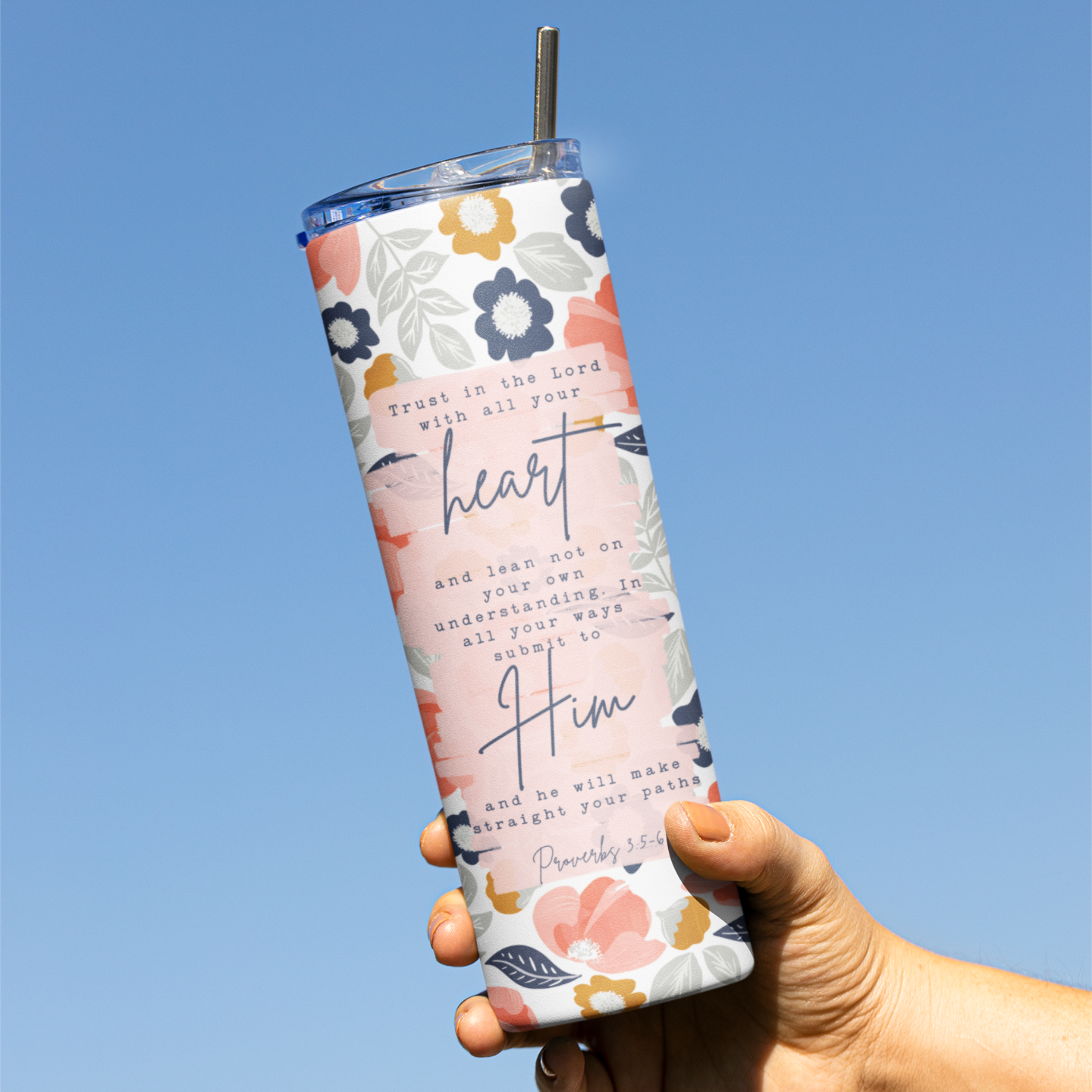 Questo bicchiere Christian in acciaio inossidabile è progettato e pressato a mano presso Naptime Faith & Life Gift Shop a White Bear Lake. Ottimo per bevande calde o fredde e viene fornito con coperchio e cannuccia in acciaio inossidabile. 20 once. Personalizzazione disponibile!