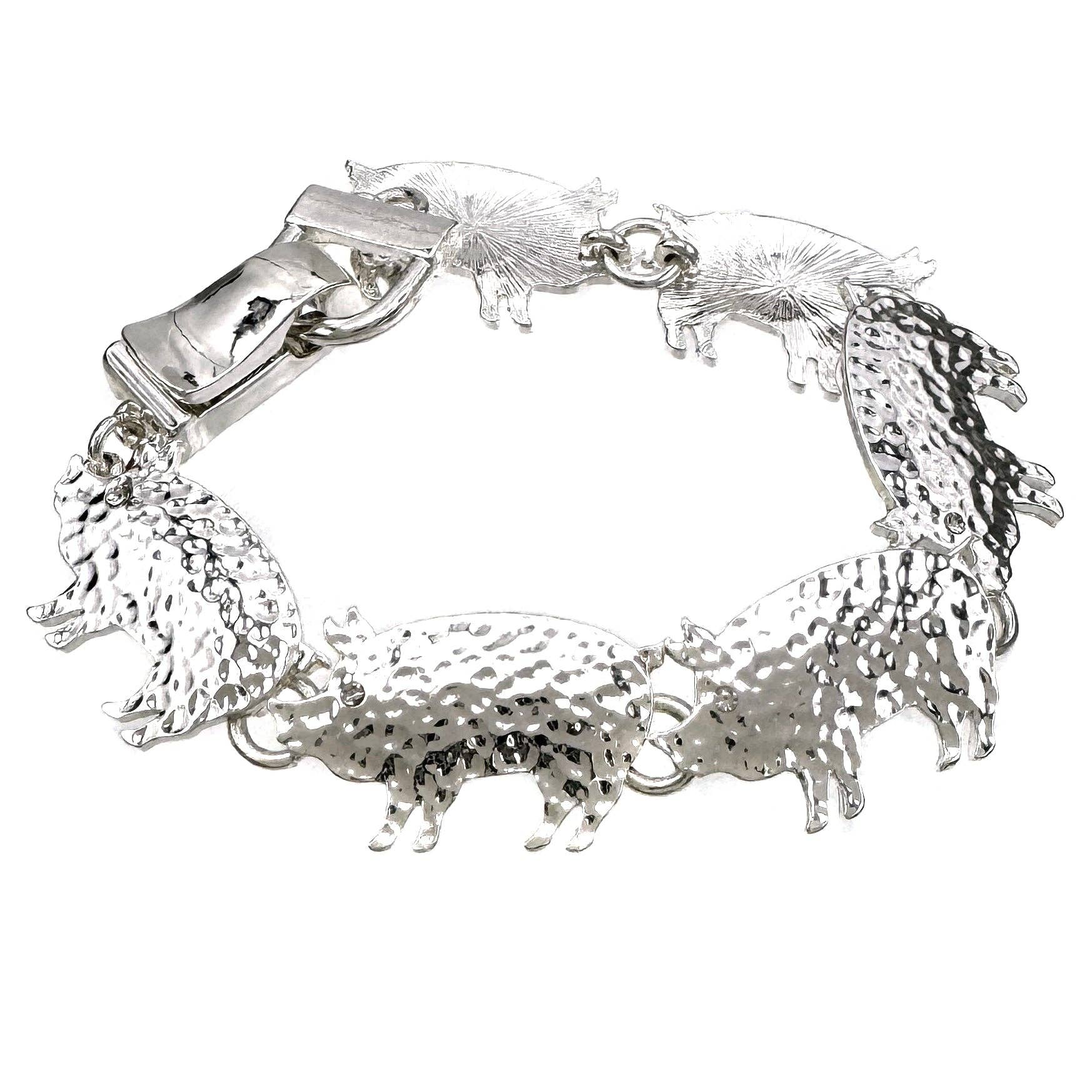 Questo braccialetto cattura un branco o una mandria di cavalli che corrono liberi e selvaggi. Un mix di patina, argento, rame, colore oro intrecciati a mano per creare questo bellissimo bracciale. Ottimo per tutti gli amanti dei cavalli. Conforme al piombo e al nichel. Elasticizzato per adattarsi alla maggior parte Circa 3 x 2 pollici. Circa 1 oncia. Solo da Lunar Deer.