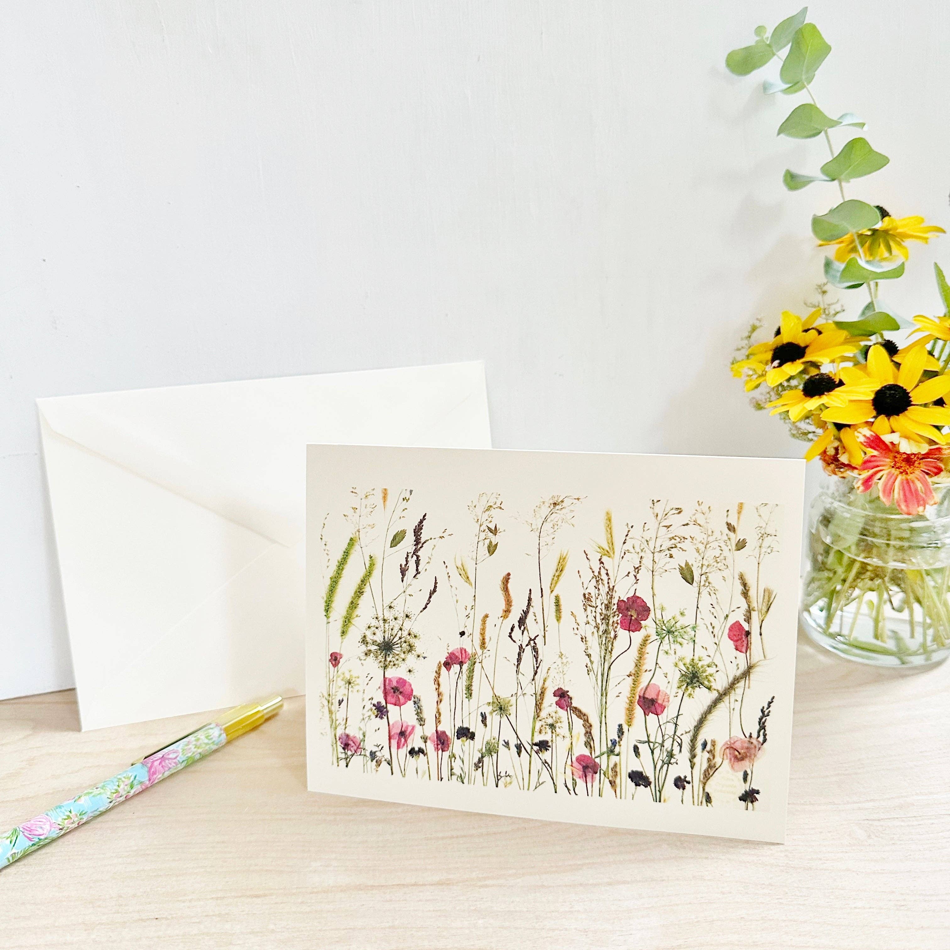 Pressed Quilt - Biglietto di auguri con fiori e foglie pressate all'ingrosso