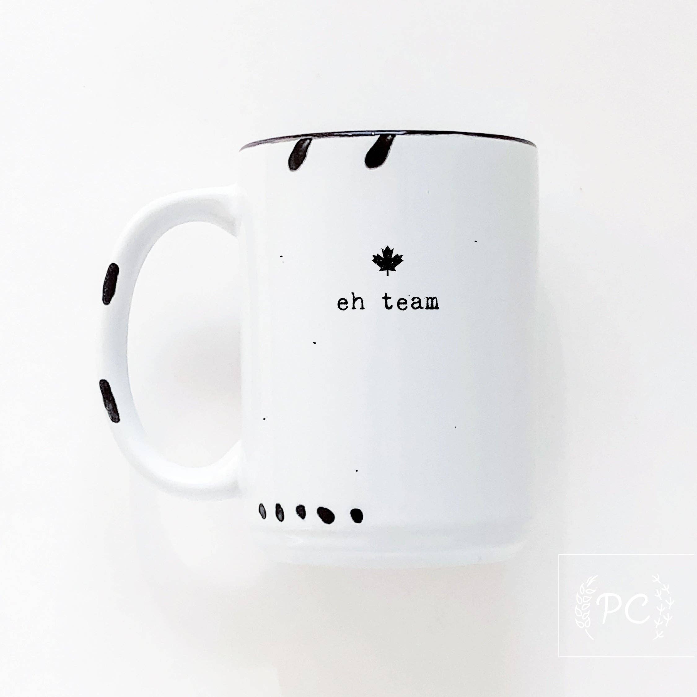 Tazze affascinanti e impertinenti di Prairie Chick Prints sono l'aggiunta perfetta a qualsiasi collezione di tazze, ideali per regali o, perché no, da tenere per te stesso per goderti la tua tazza mattutina. Allora, cosa stai aspettando? Realizzate su ordinazione. Stampate singolarmente a caldo su una tazza in ceramica con un affascinante aspetto rustico smaltato. Meglio ordinarle in gruppi di 12 per la spedizione. Una scatola contiene 36. – stampate su entrambi i lati per il piacere di tutti – grande e meravigliosa dimensione da 15 oz. – si consiglia il lavaggio a mano (lavabile in lavastoviglie nel ripiano superiore, evitare calore estremo e cicli di sanificazione) – adatte al microonde perché riscaldare succede ;) – disponibili in 7 colori pastello e con segni fatti a mano, ognuna è unica – progettate e stampate nel mio studio domestico, Sherwood Park, Alberta Il design rustico della tazza a sublimazione è © Crystal Derouin Design Inc./Prairie Chick Prints. Tazza canadese, tazza vintage, regalo originale, tazza rustica, orgoglio canadese, eh team, vero nord forte e libero, cuori luminosi, il Canada non è in vendita, gomiti alti, scusa non scusa, foglia d'acero.