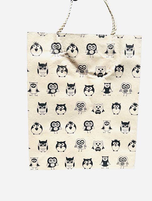 Questi sacchetti di carta fatti a mano sono realizzati con carte decorative serigrafate. La carta è prodotta utilizzando la corteccia delle piante dafne che crescono in alto ai piedi dell'Himalaya in Nepal. La corteccia è colorata, serigrafata e trasformata in sacchetti da cooperative femminili locali di Kathmandu.