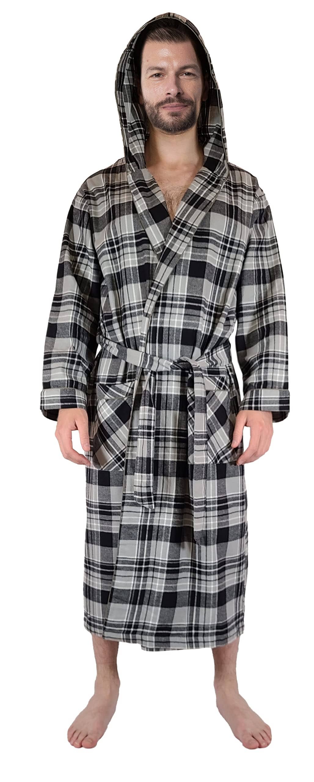 Accappatoio lungo con cappuccio in flanella di cotone pettinato al 100%, confezione da 2 all'ingrosso